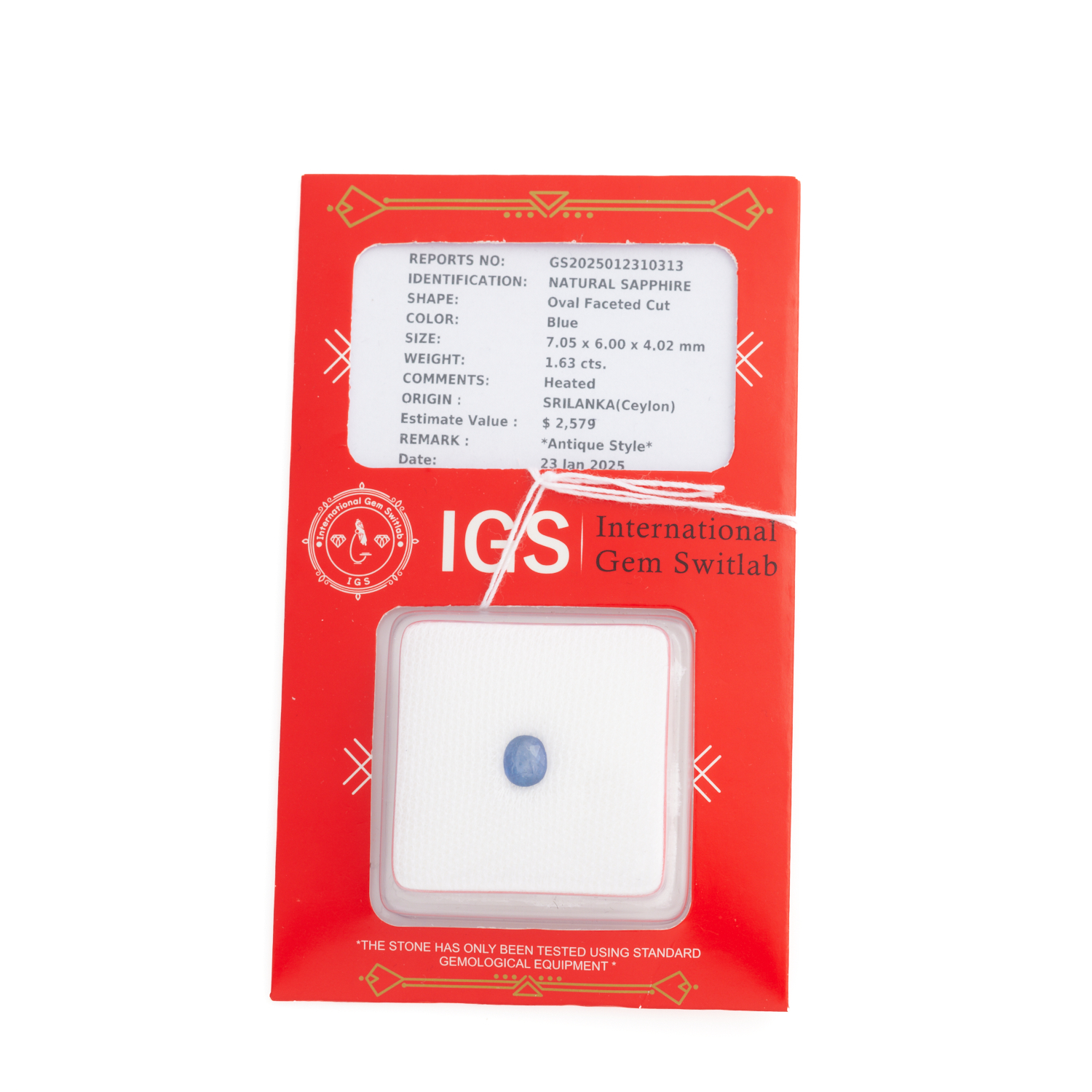AN UNMOUNTED SRI LANKAN SAPPHIRE WEIGHING 1.63CTS