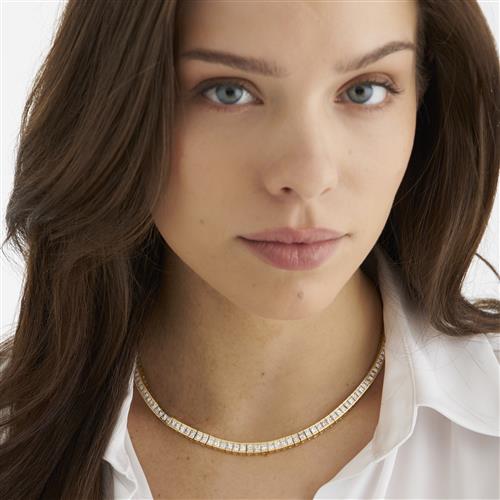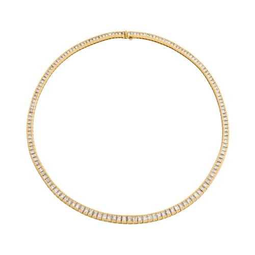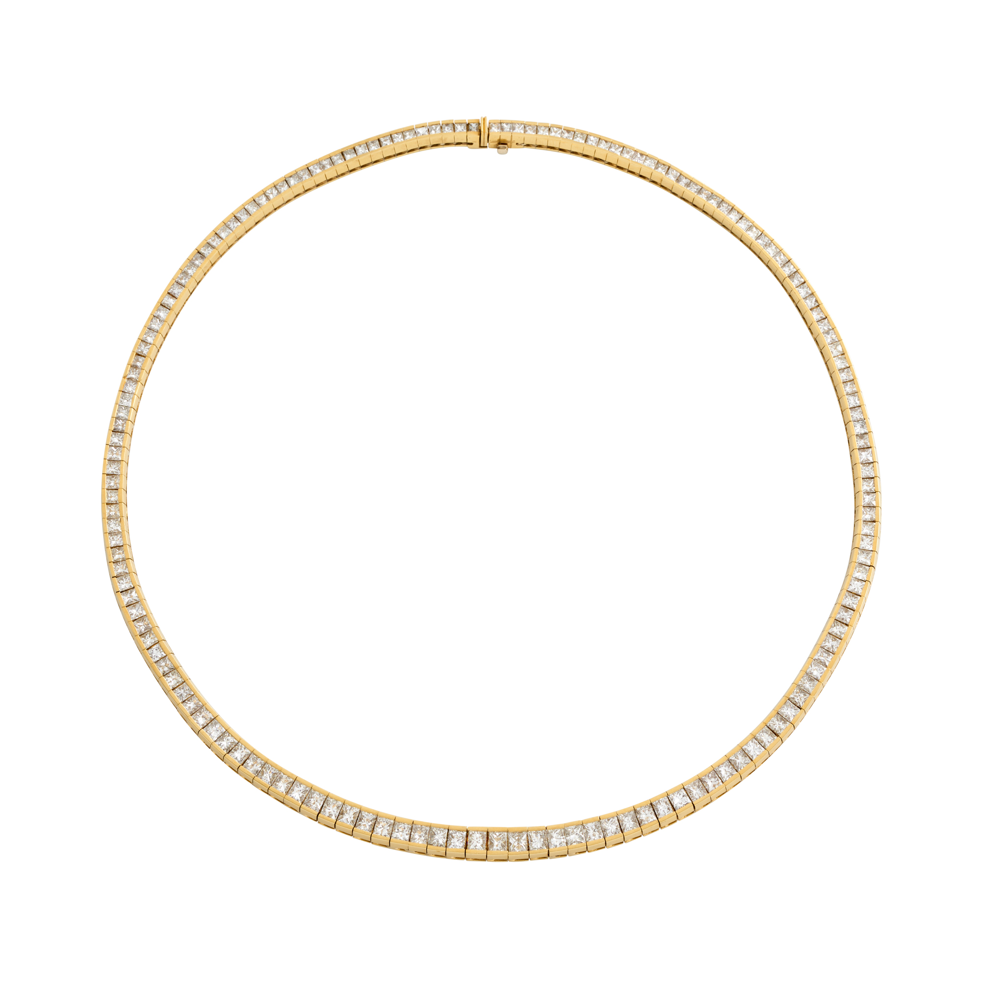 Modelled as a continuous and graduated row of eighty-one princess cut diamonds, together weighing approximately 18.00 carats, to an integrated box clasp, length 420mm, gross weight approximately 60.2 grams.