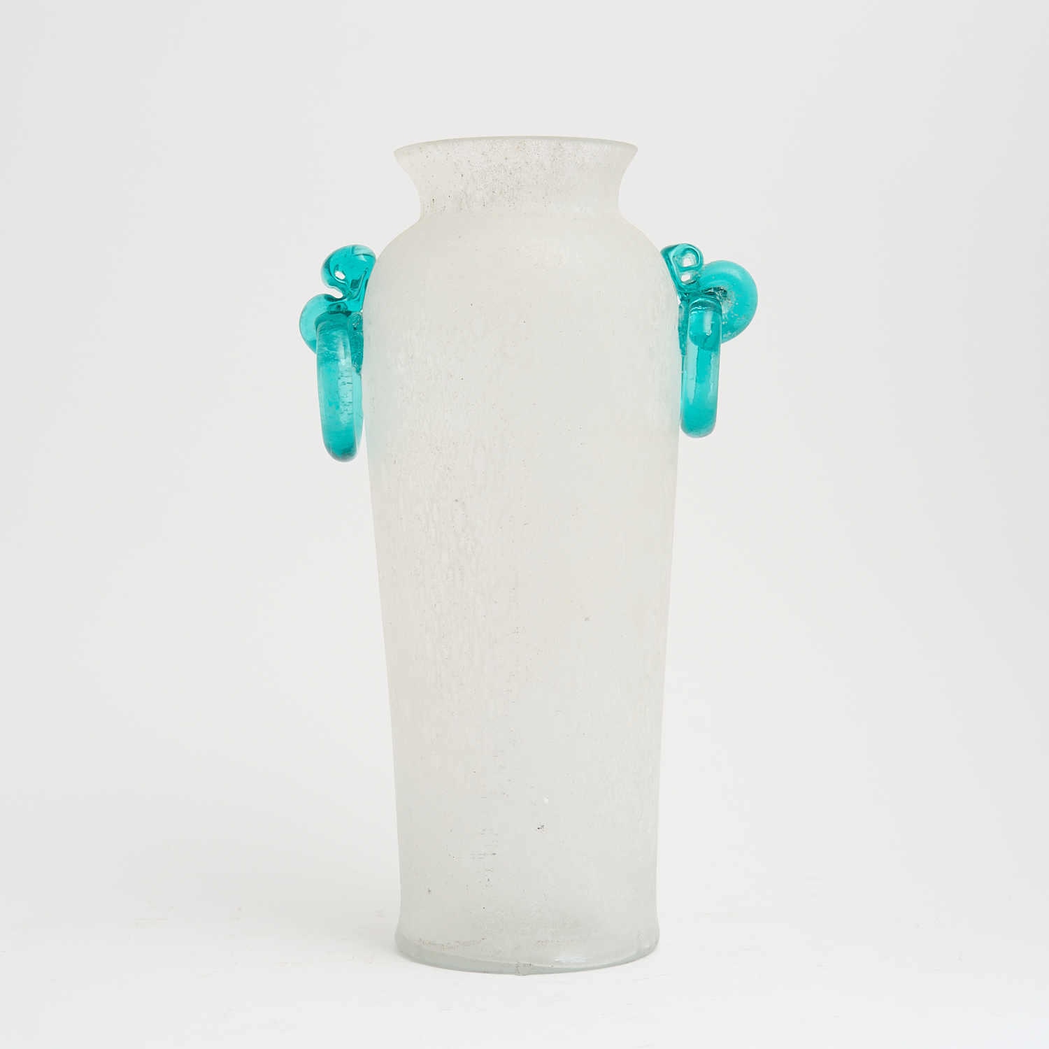 A LARGE MURANO FROSTED GLASS VASE WITH LUG HANDLES H.38CM (A/F)