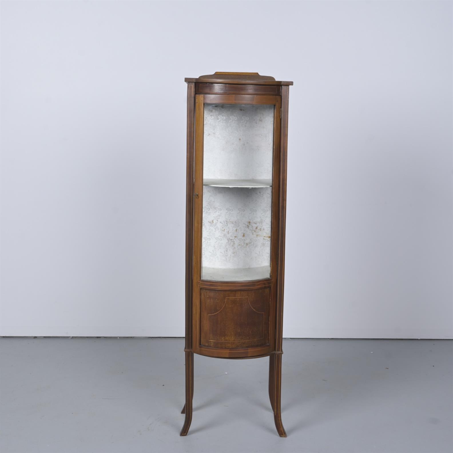 A MAHOGANY INLAID BOWFRONT DISPLAY CABINET (148CM H X 42CM W X 37CM D)
