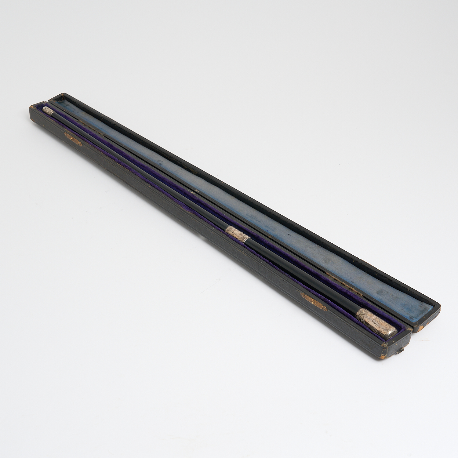 A STERLING SILVER MOUNTED CONDUCTORS BATON IN HARD CASE, LONDON, 1911, DATED 1912.