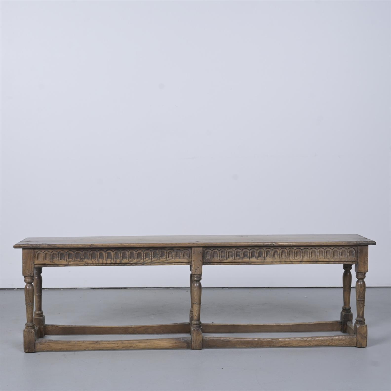 A 17H CENTURY ENGLISH STYLE OAK BENCH (45CM H X 150CM W X 28CM D)