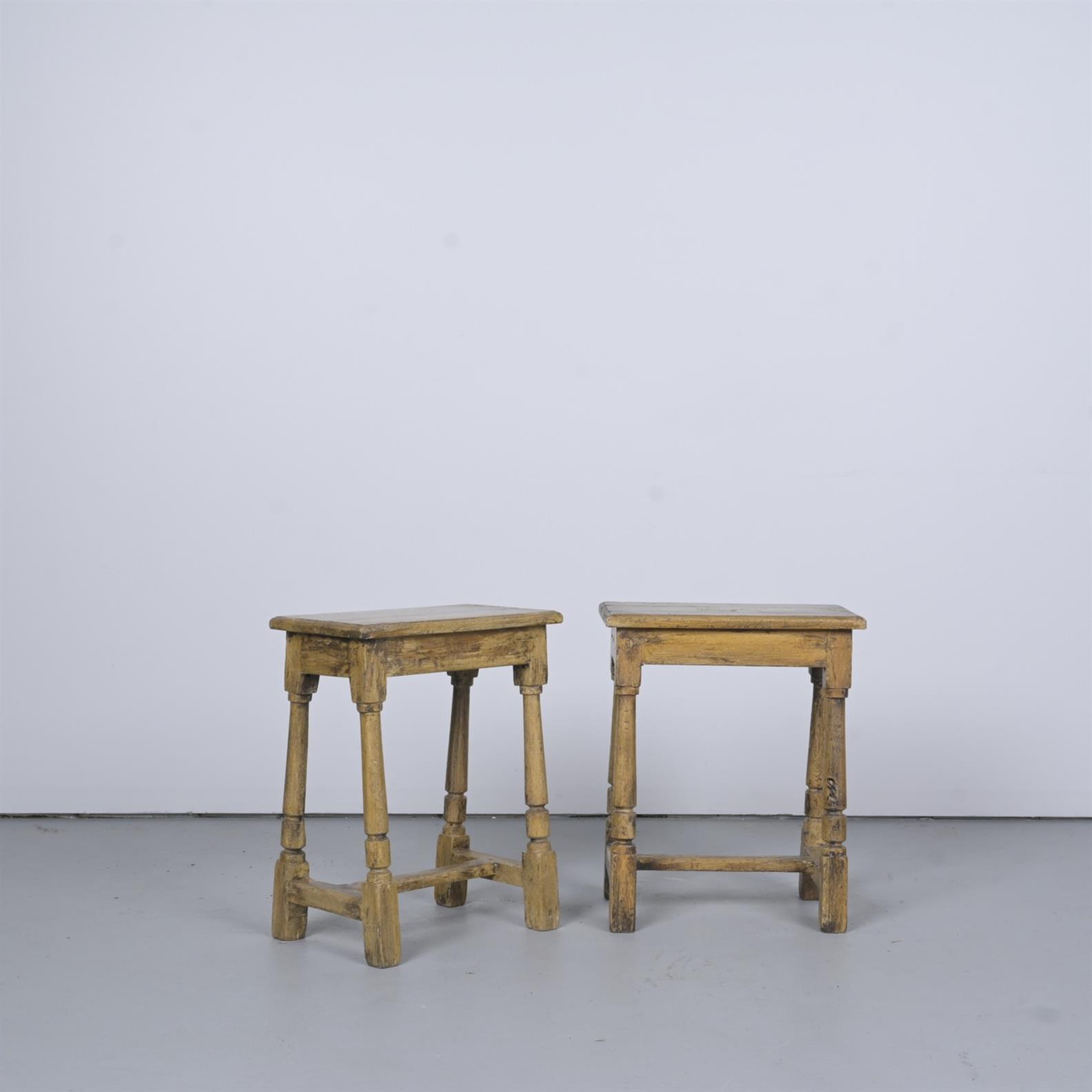 A PAIR OF TALL FRENCH-STYLE OAK JOINT STOOLS (56CMH X 45CM W X 28CM D)