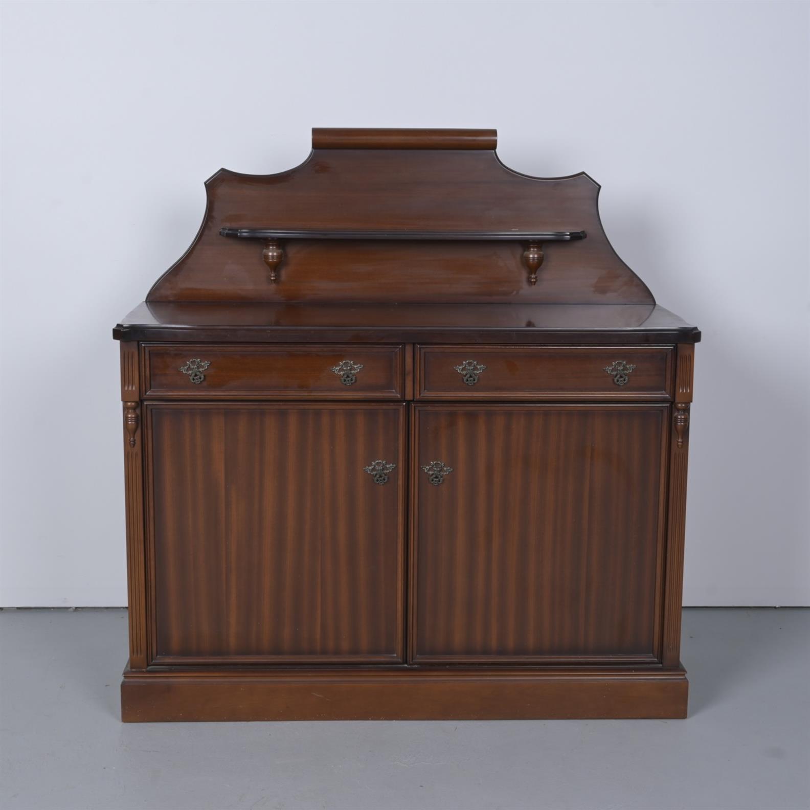 A MAHOGANY SIDEBOARD (135CM H X 130CM W X 47CM D) (THIS ITEM MUST BE REMOVED BY CARRIERS AT THE CUSTOMER'S EXPENSE. LEONARD JOEL STAFF CANNOT ASSIST CARRYING THIS ITEM)