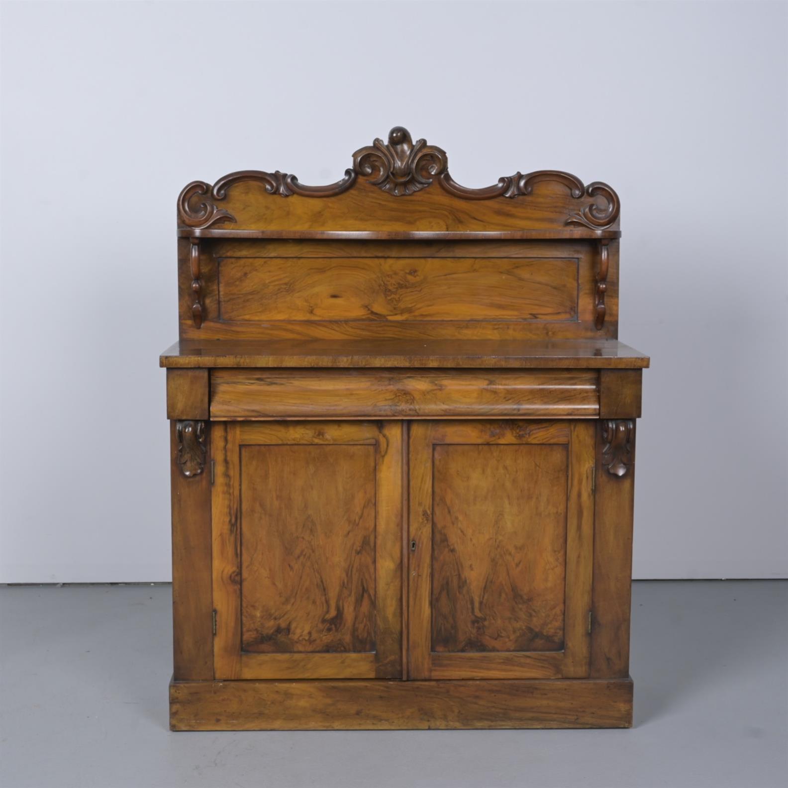 A VICTORIAN FIGURED WALNUT SIDEBOARD (A/F) (134CM H X 104CM W X 39CM D) (THIS ITEM MUST BE REMOVED BY CARRIERS AT THE CUSTOMER'S EXPENSE. LEONARD JOEL STAFF CANNOT ASSIST CARRYING THIS ITEM)