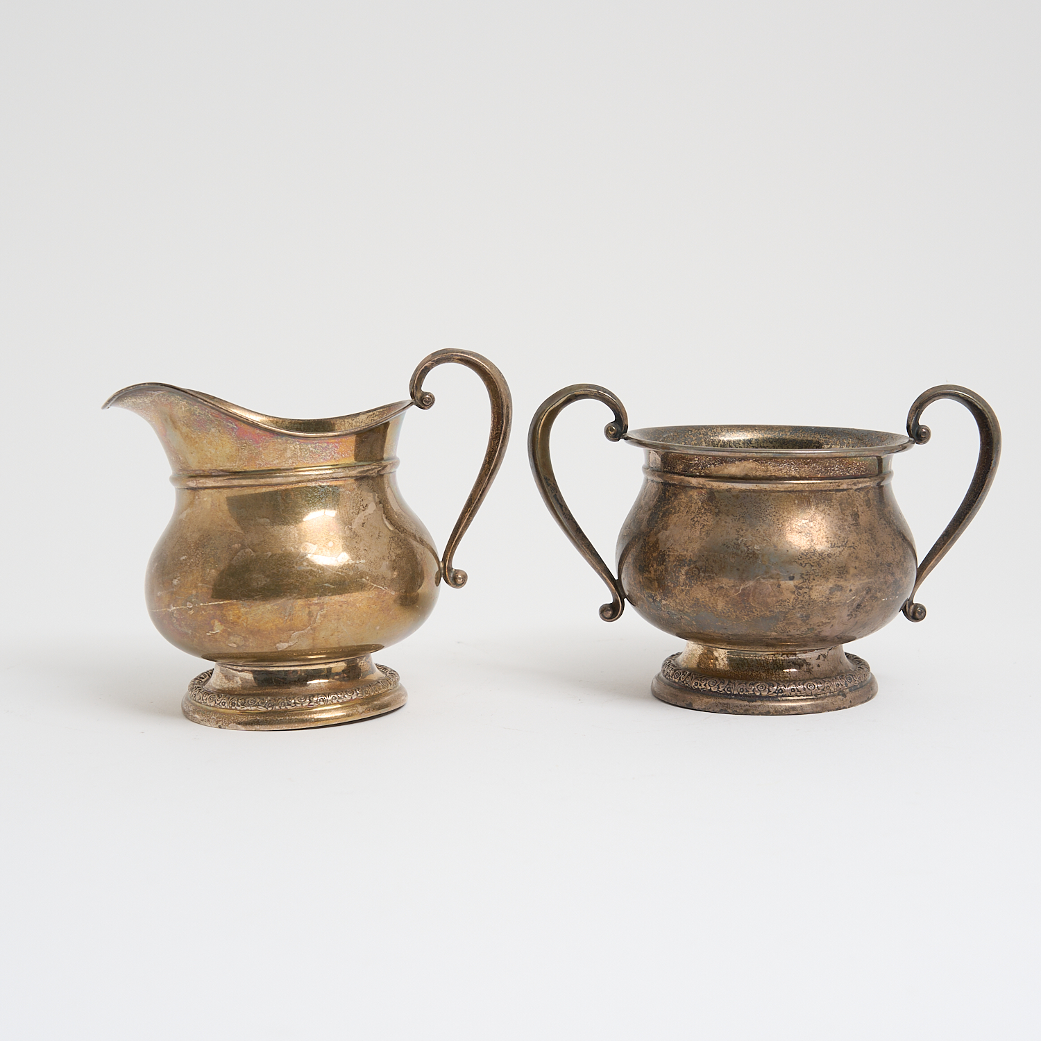 A STERLING SILVER CREAMER AND MATCHING SUGAR 204G H.9.5CM