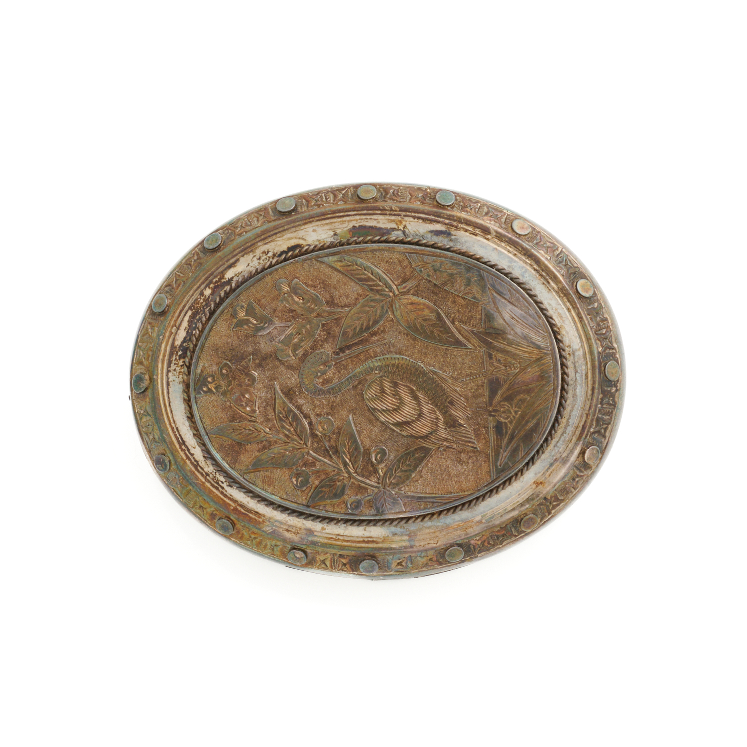 AN ENGRAVED LOCKET BROOCH IN STERLING SILVER, 50 X 45MM