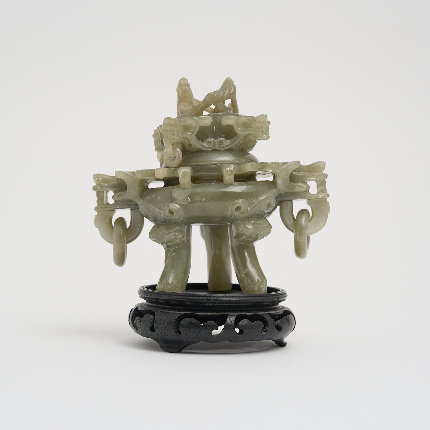 A CHINESE HARDSTONE CENSOR ON AN ASSOCIATED STAND H.17CM