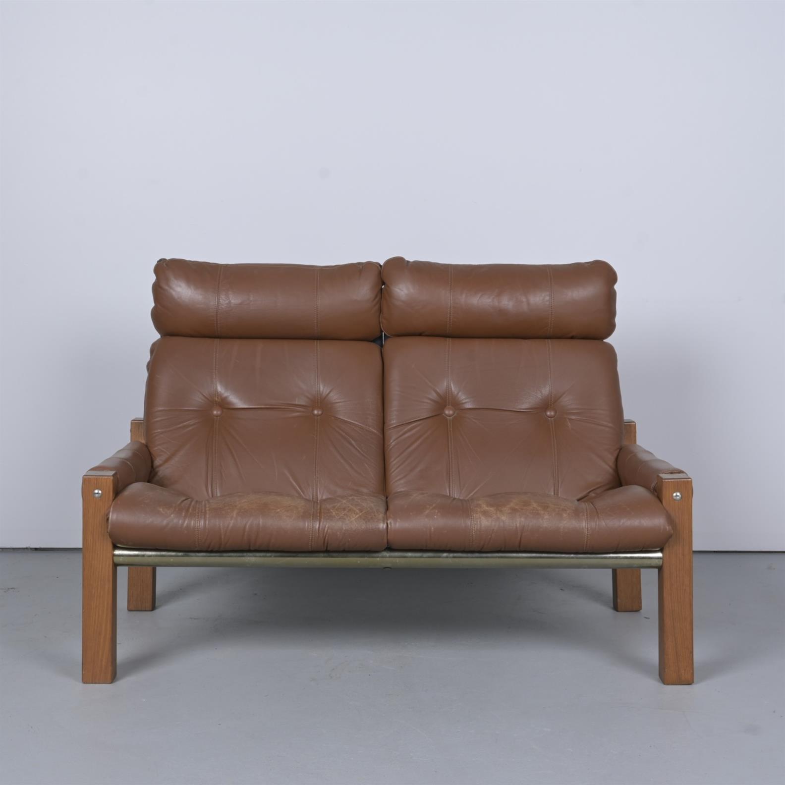 A DANISH TWO SEATER LEATHER SOFA FOR ARTICA (92H X120W X 80D CM)