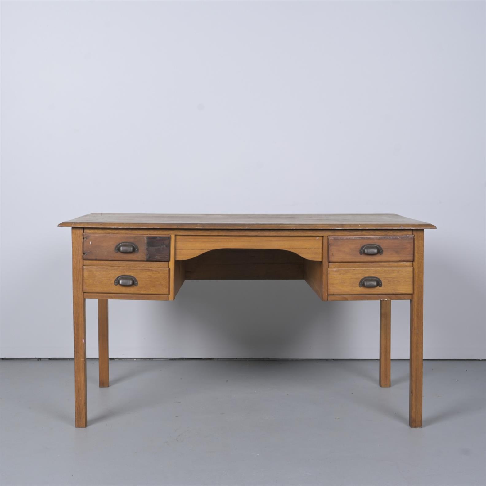 AN EARLY 20TH CENTURY FOUR DRAWER DESK (A/F) (77CM H X 137CM W X 76CM D)