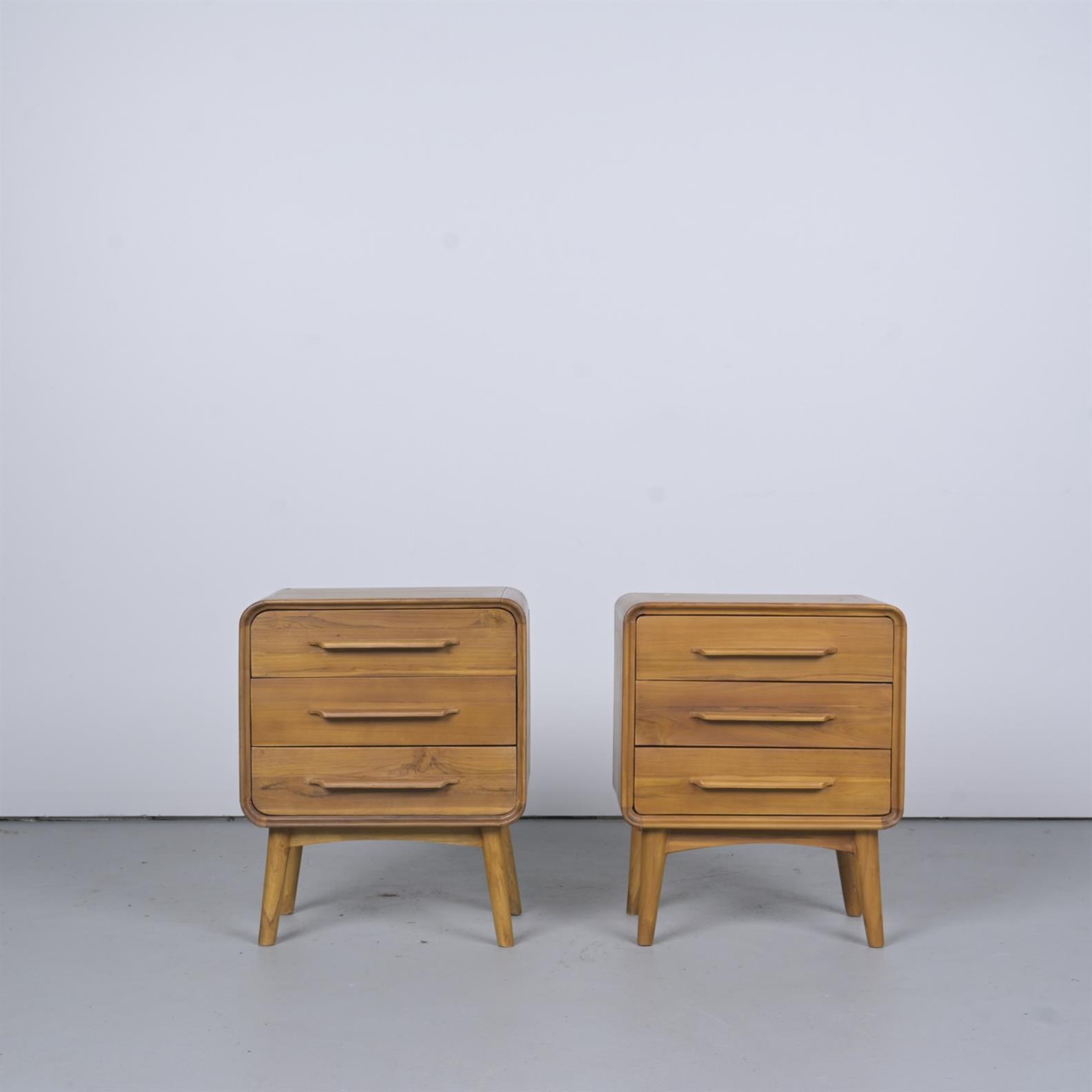 A PAIR OF TEAK BEDSIDE TABLES (62CM H X 49CM W X 33CM D)