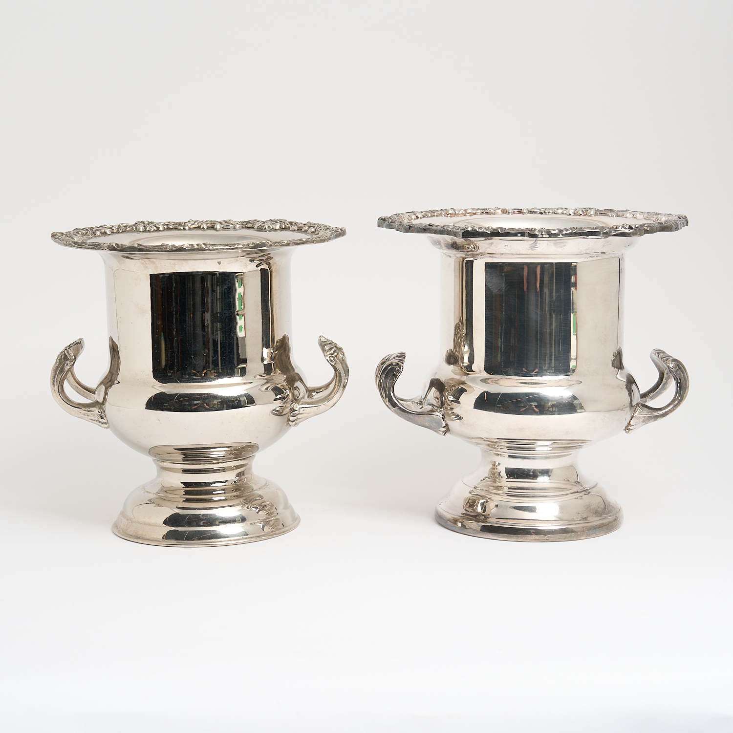 TWO VINTAGE AUSTRALIAN SILVER PLATE TWIN HANDLED HEAVY GAUGE CHAMPAGNE/ICE BUCKETS H.25CM