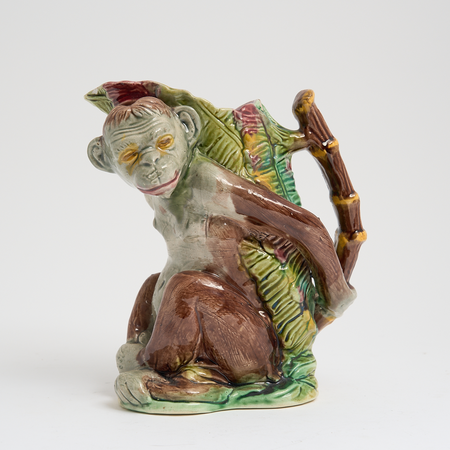 A 19TH CENTURY ENGLISH MINTON MAJOLICA MONKEY JUG (A/F) H.20.5CM