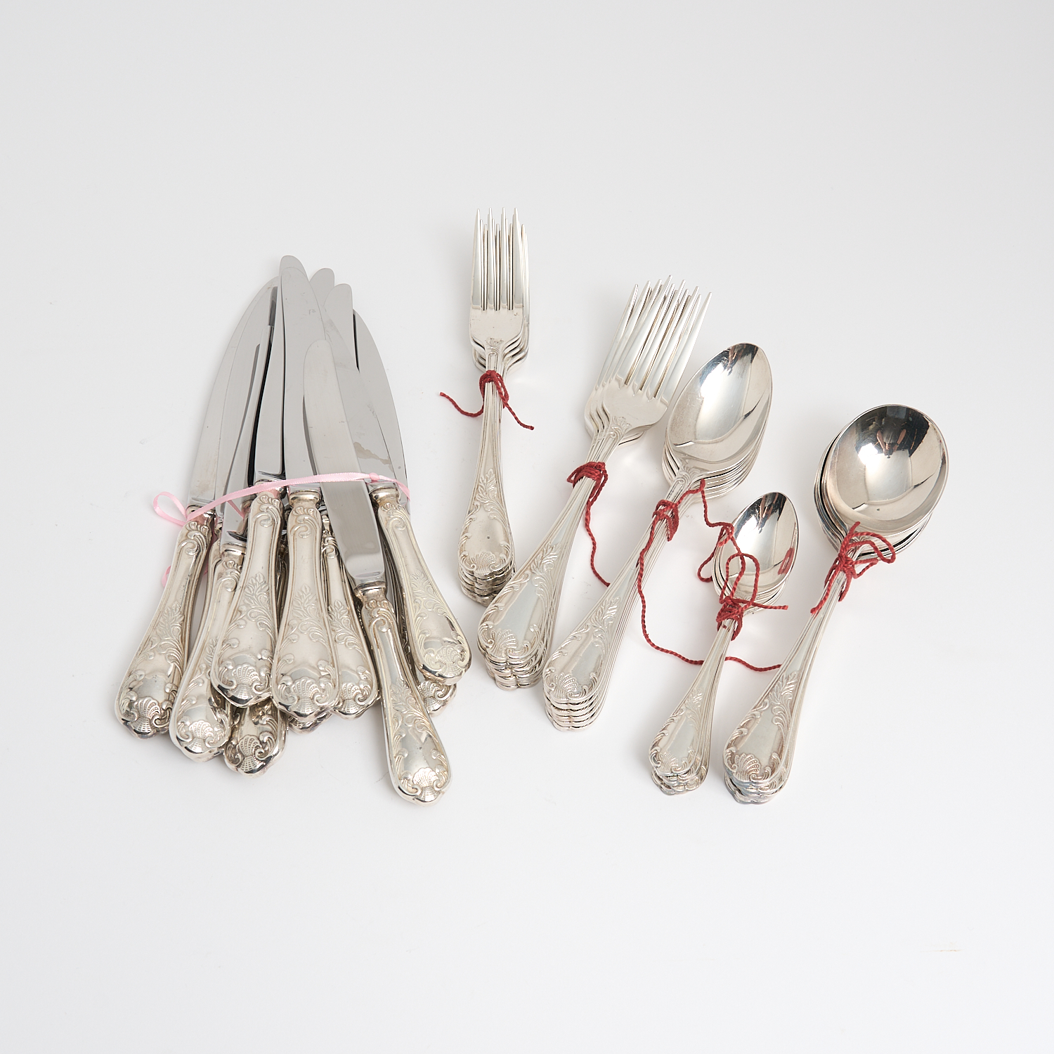 AN ENGLISH SILVER PLATE CUTLERY SET FOR SIX