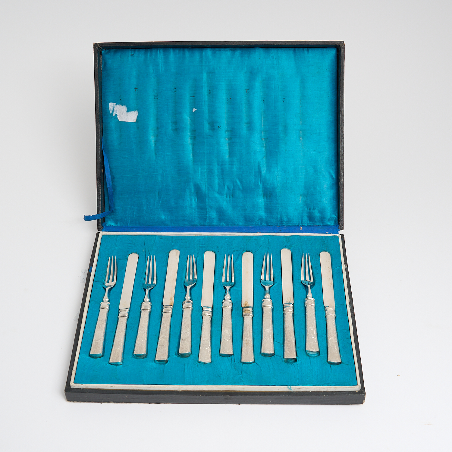 A CASED SET OF CHINESE HALLMARKED SILVER FRUIT CUTLERY W.270G L..29CM (CASE)