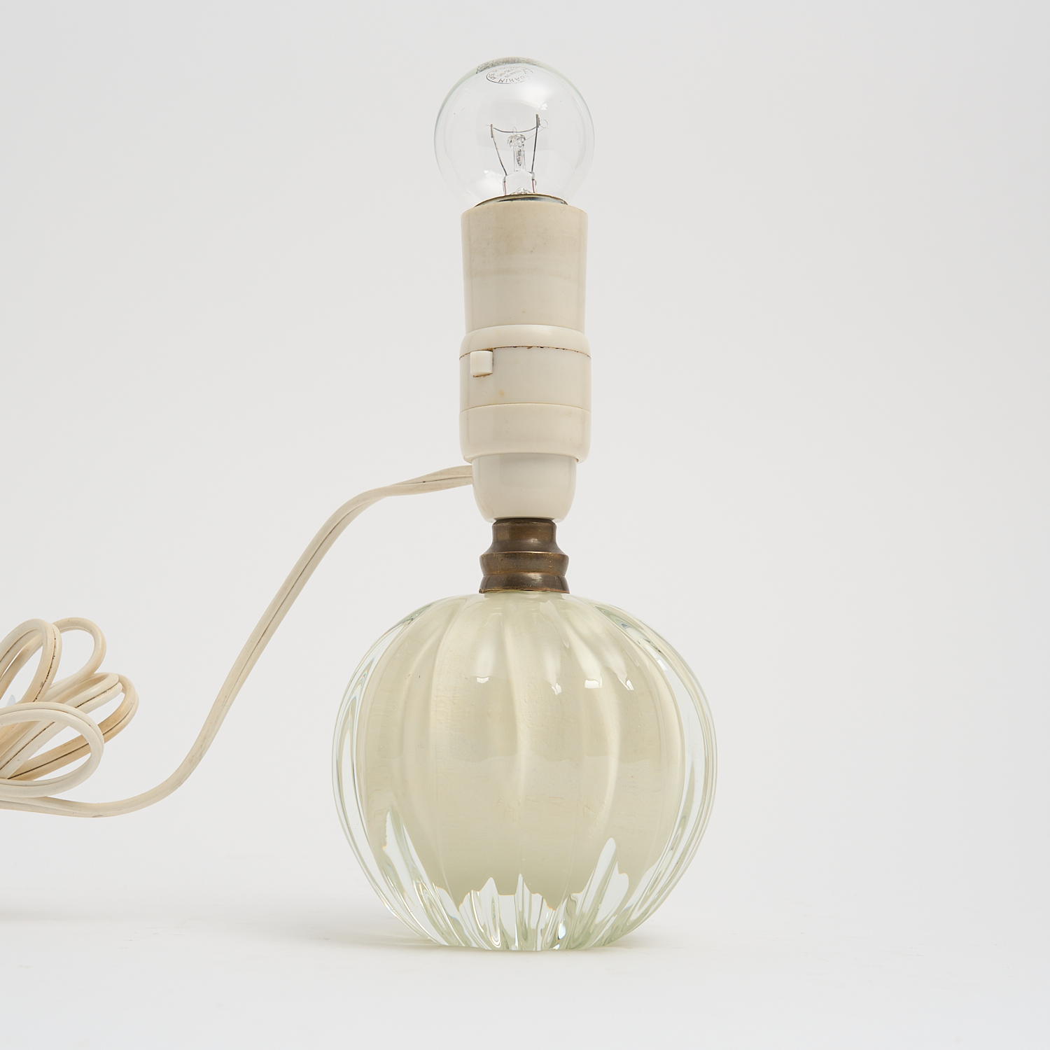 AN ITALIAN FLUTED GLASS LAMP BASE WITH GOLD FOIL INCLUSIONS H.25CM