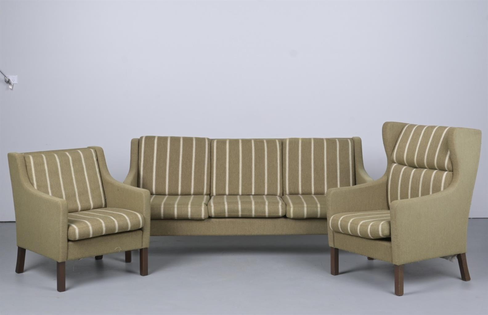 A DANISH THREE PIECE LOUNGE SETTING (A/F) (SOFA 85H X 185W X 77D CM) (THIS ITEM MUST BE REMOVED BY CARRIERS AT THE CUSTOMER'S EXPENSE. LEONARD JOEL STAFF CANNOT ASSIST CARRYING THIS ITEM)