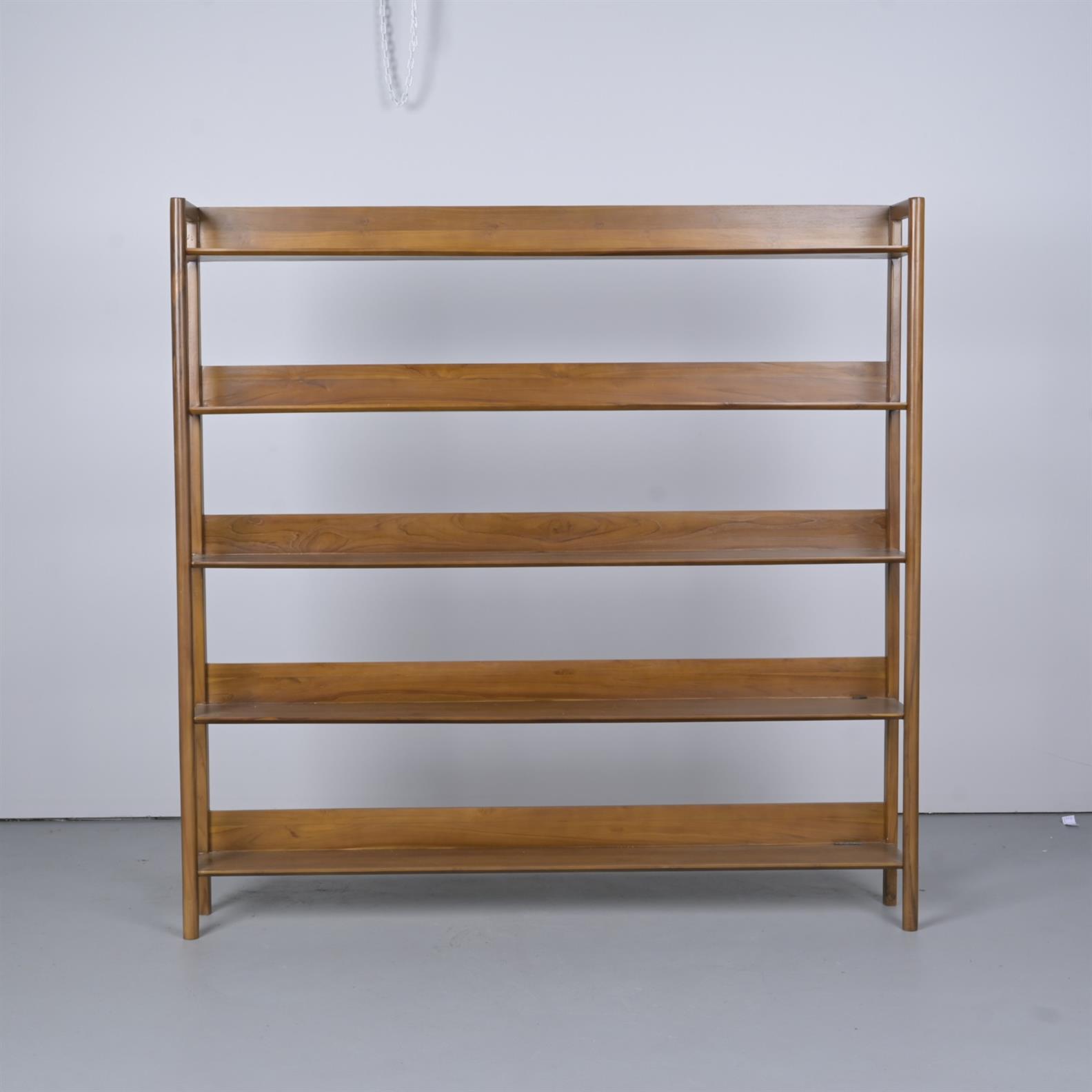 A LARGE TEAK BOOKCASE (180H X 180W X 27D CM) (THIS ITEM MUST BE REMOVED BY CARRIERS AT THE CUSTOMER'S EXPENSE. LEONARD JOEL STAFF CANNOT ASSIST CARRYING THIS ITEM)
