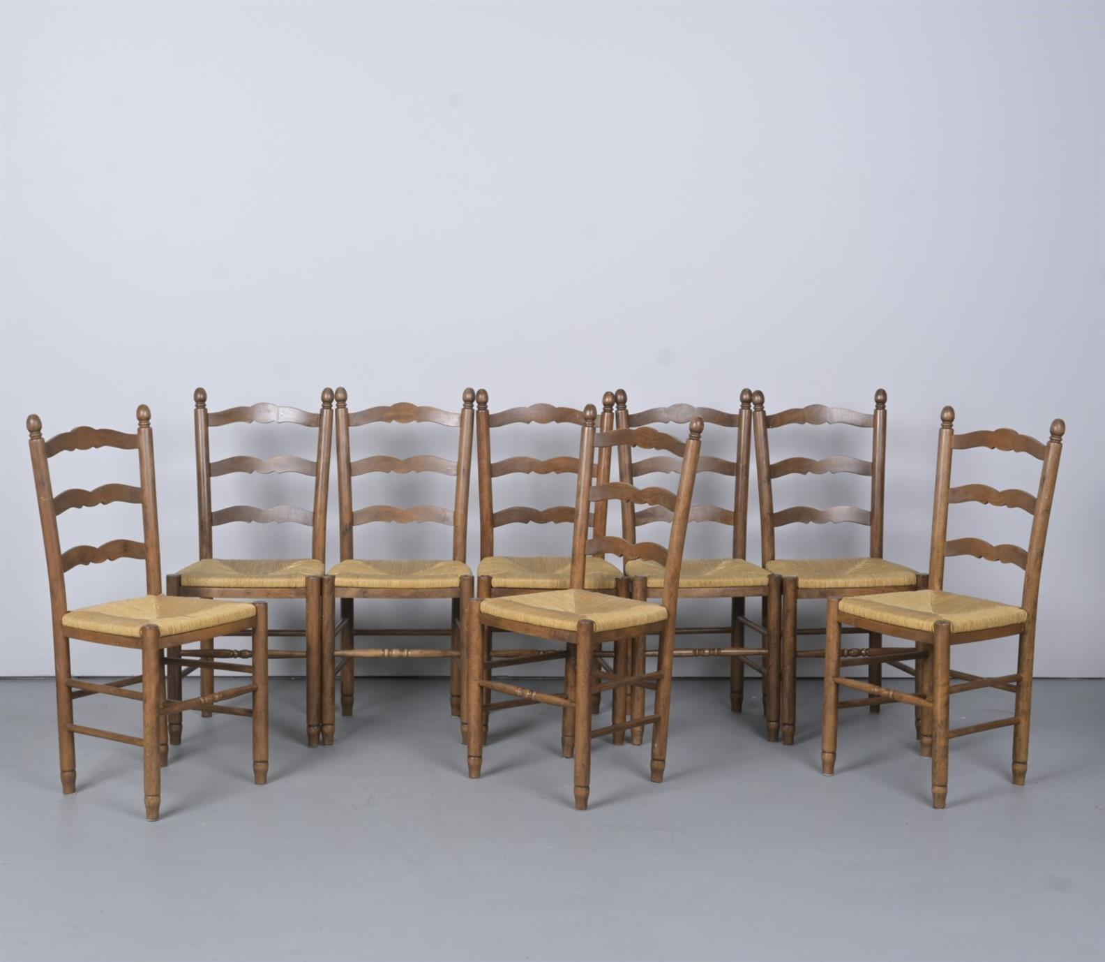A SET OF EIGHT LADDERBACK DINING CHAIRS WITH RUSH SEATS