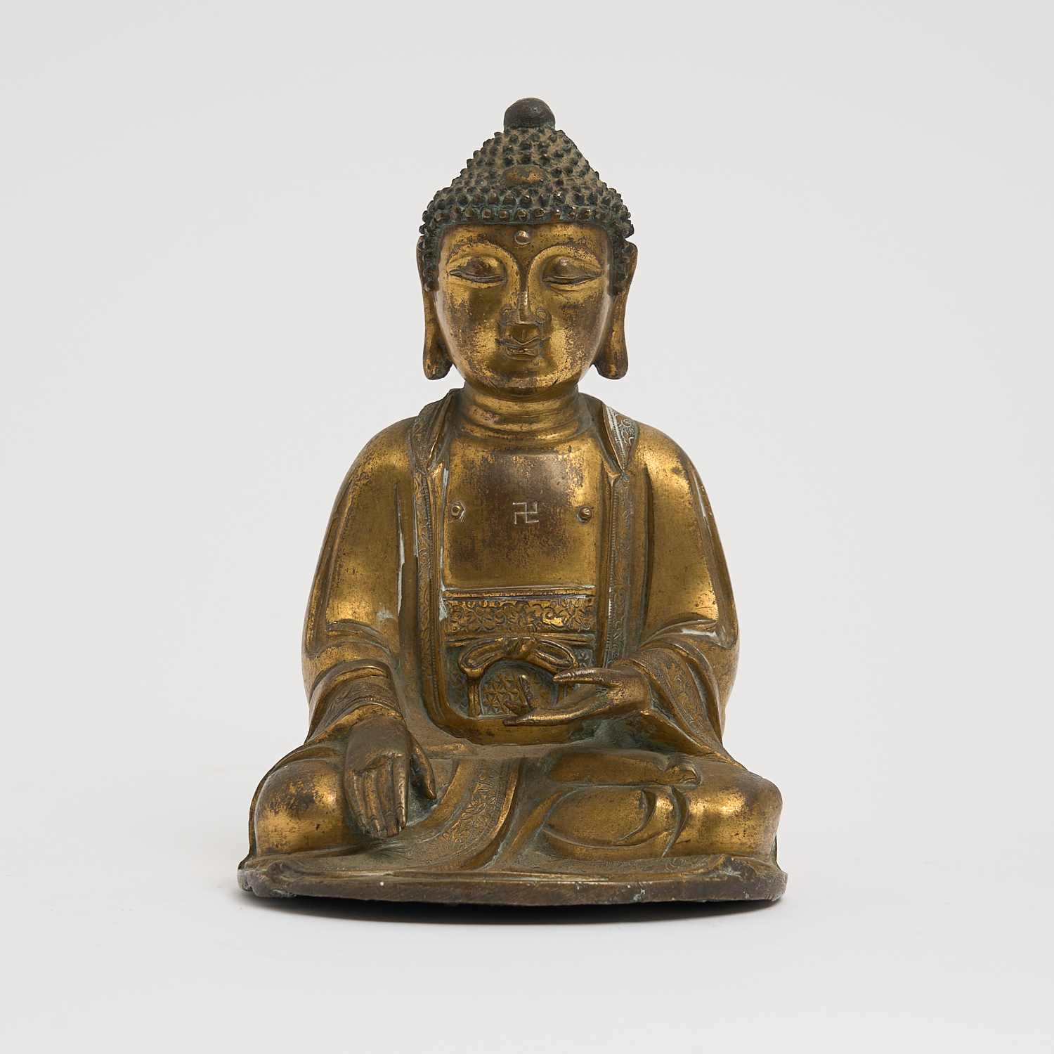 A CHINESE ANTIQUE GILDED BRONZE SEATED BUDDHA H.15CM