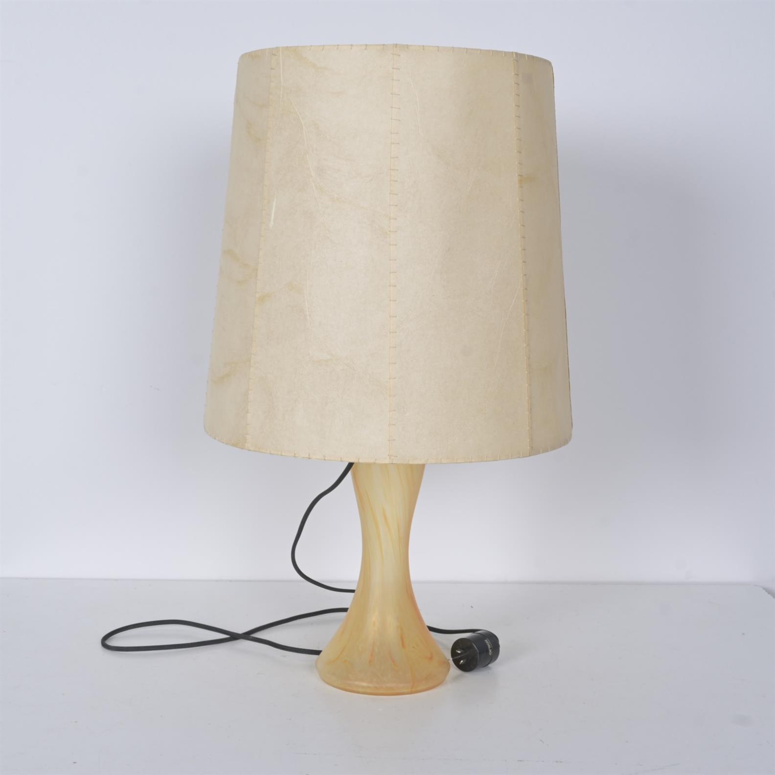 A FRENCH VIANNE GLASS BASE LAMP WITH PAPER SHADE (53CM H)
