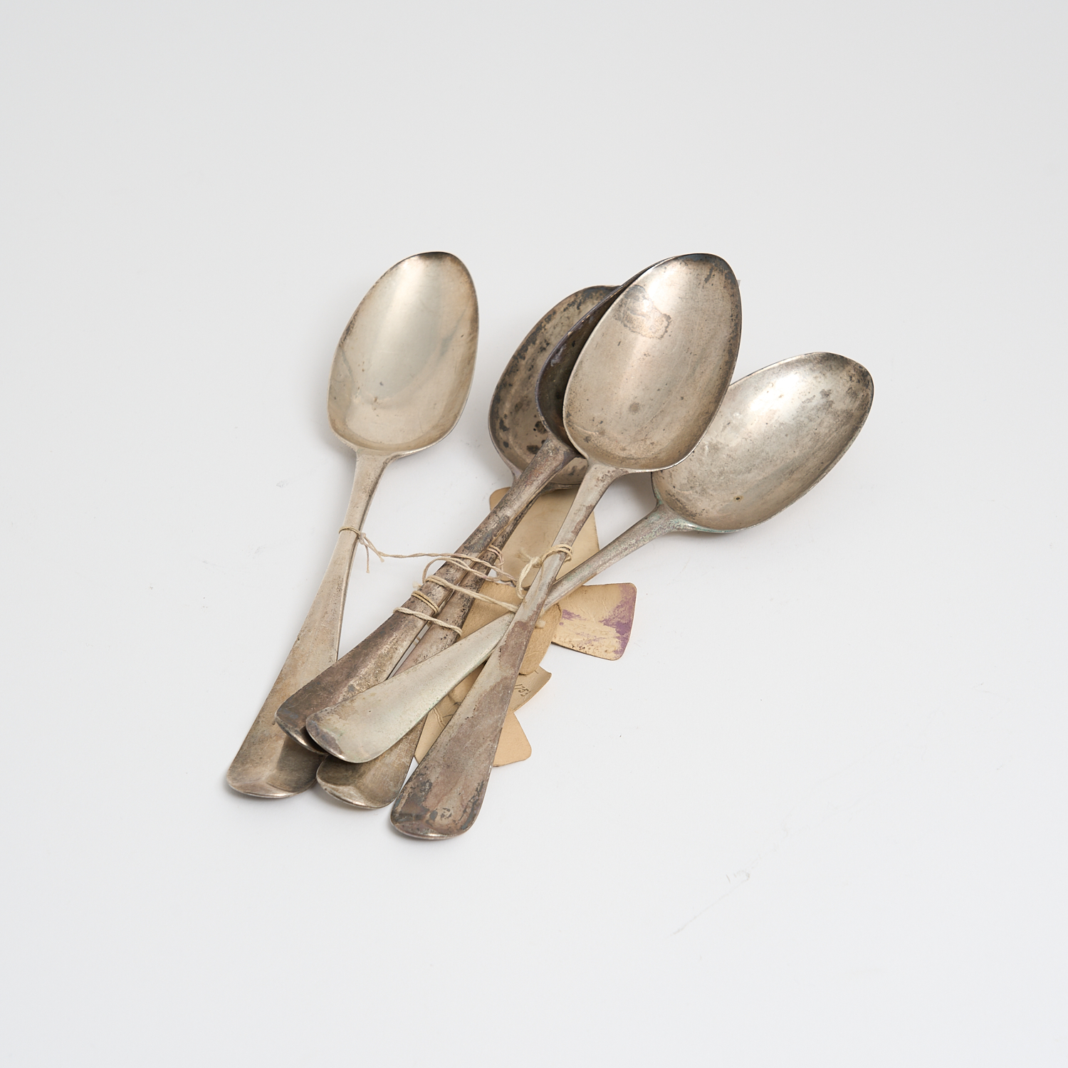 FIVE STERLING SILVER HANOVERIAN PATTERN SERVING SPOONS INCLUDING ONE RAT-TAIL SPOON 320G L.20CM (LONGEST)