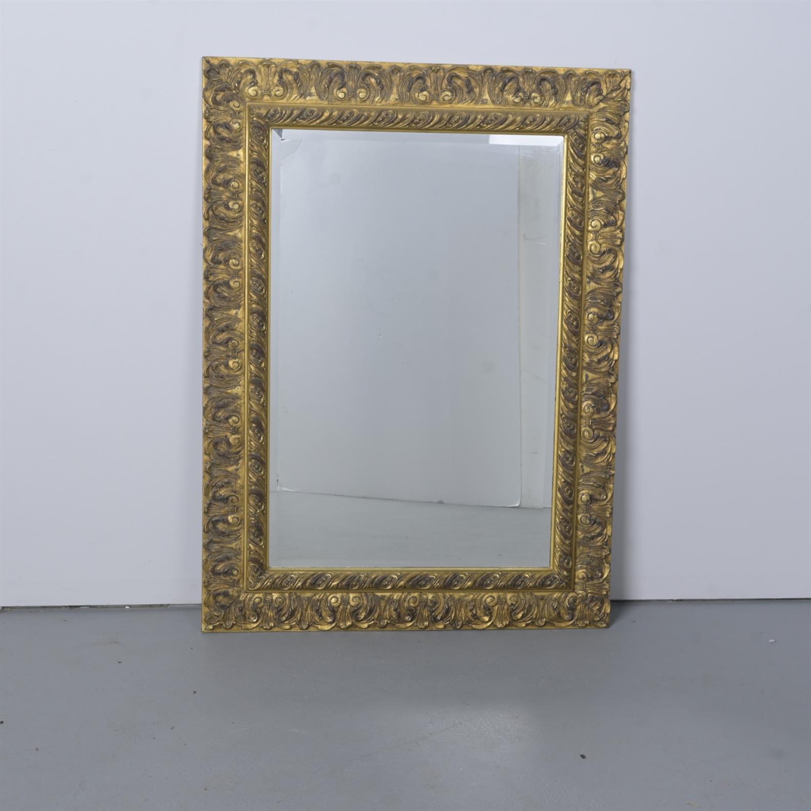 A BEVELLED MIRROR IN AN ANTIQUE-STYLE GILT FRAME (119CM H X 87CM W)