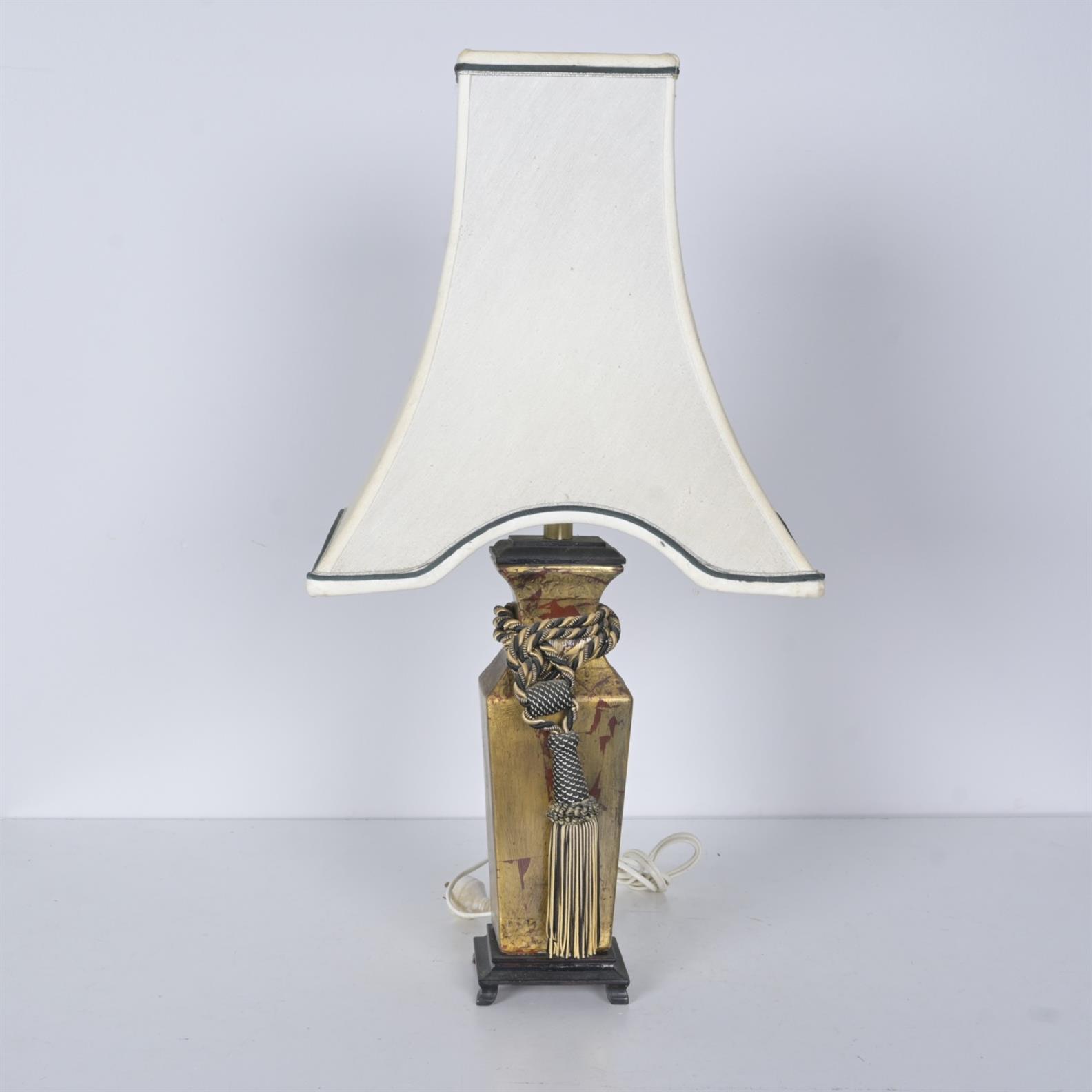 A GILT CERAMIC TABLE LAMP IN CHINESE MANNER (75CM H X 40CM W X 26CM D)