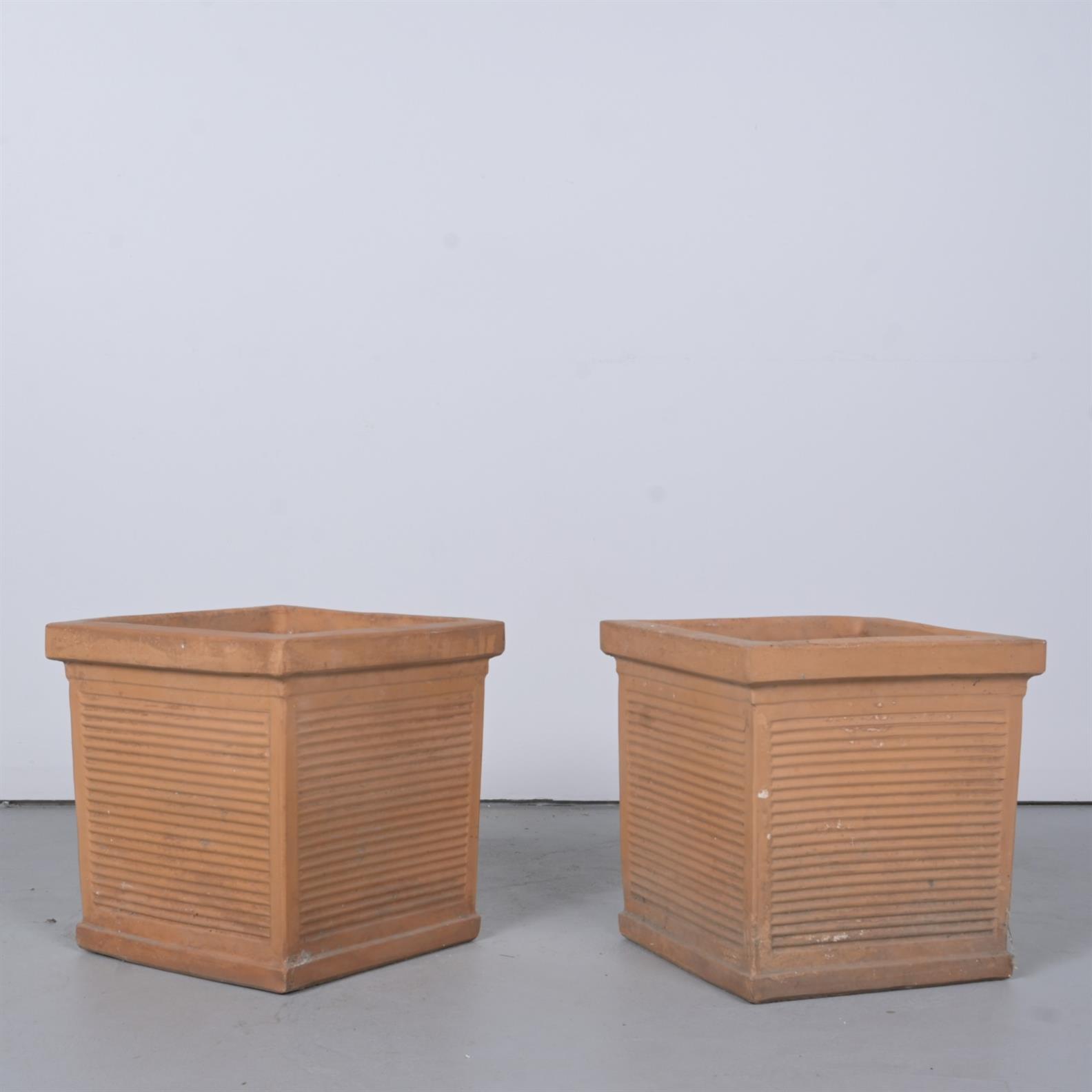 A PAIR OF ITALIAN TERRACOTTA PLANTERS (41CM H X 40CM W X 39CM D) (THIS ITEM MUST BE REMOVED BY CARRIERS AT THE CUSTOMER'S EXPENSE. LEONARD JOEL STAFF CANNOT ASSIST CARRYING THIS ITEM)