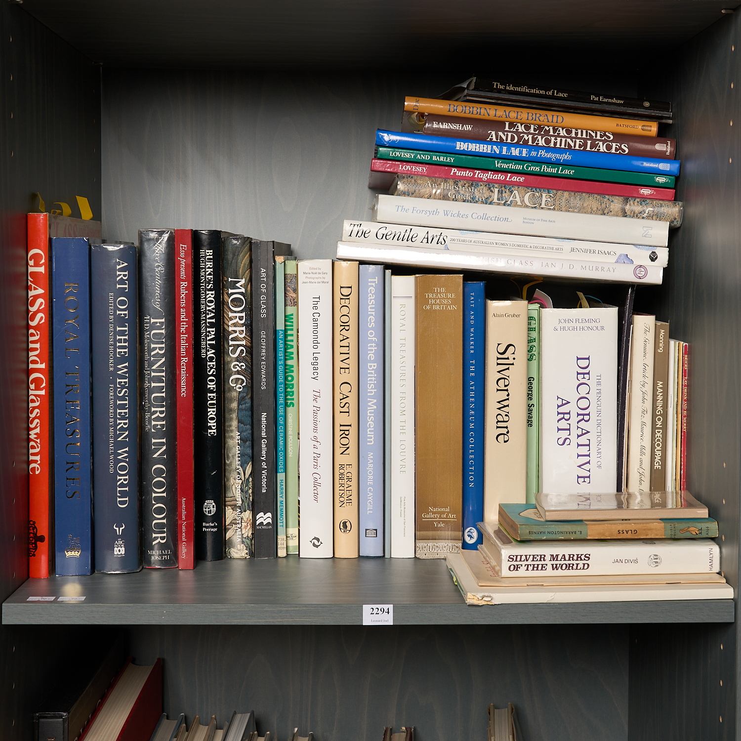 A SHELF OF BOOKS PERTAINING TO DECORATIVE ARTS, LACE AND COLLECTING
