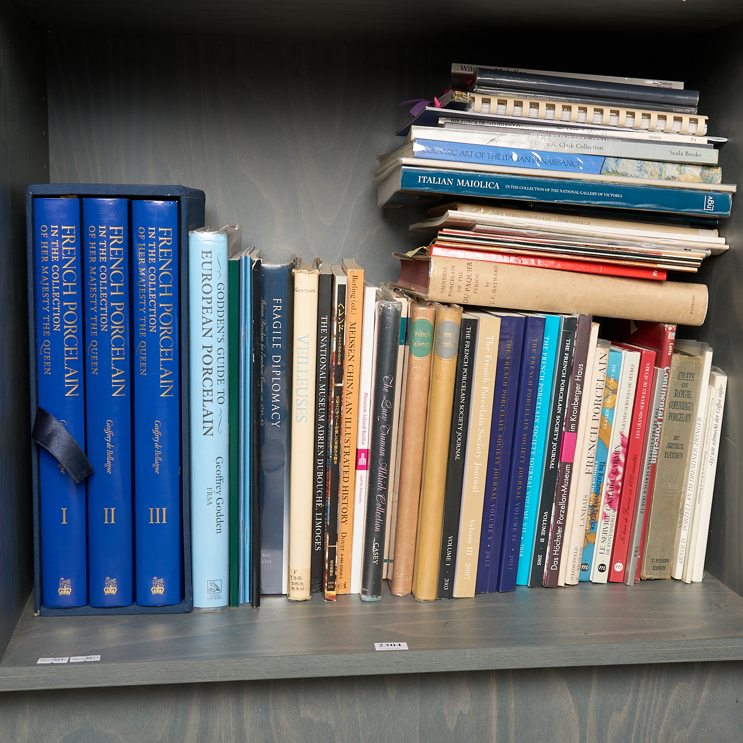 A SHELF OF BOOKS PERTAINING TO FRENCH AND CONTINENTAL PORCELAIN AND COLLECTING