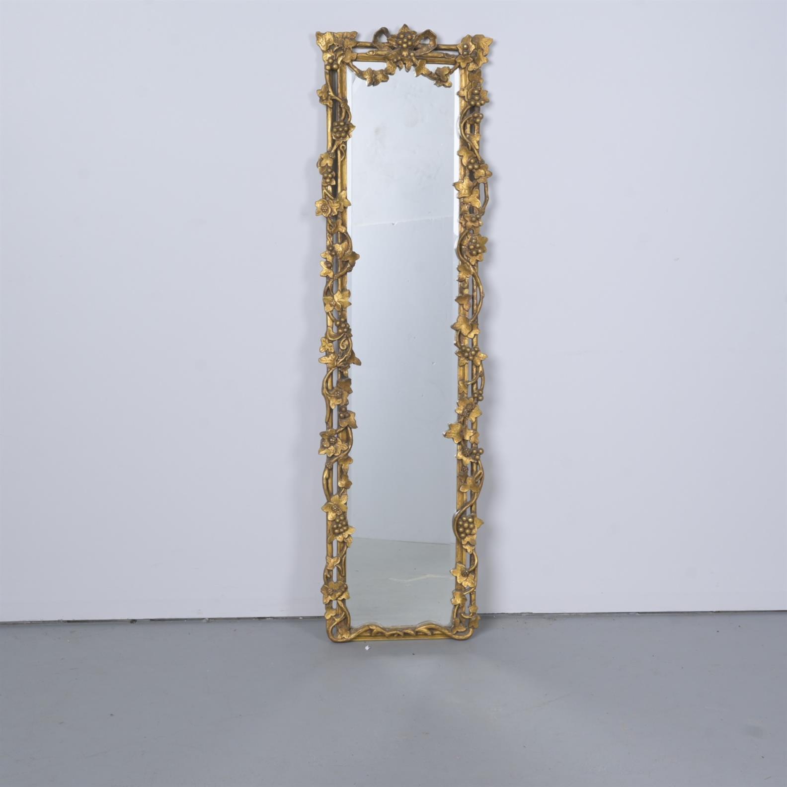 A CARVED GILT WOOD FRAMED MIRROR (166CM H X 48CM W)