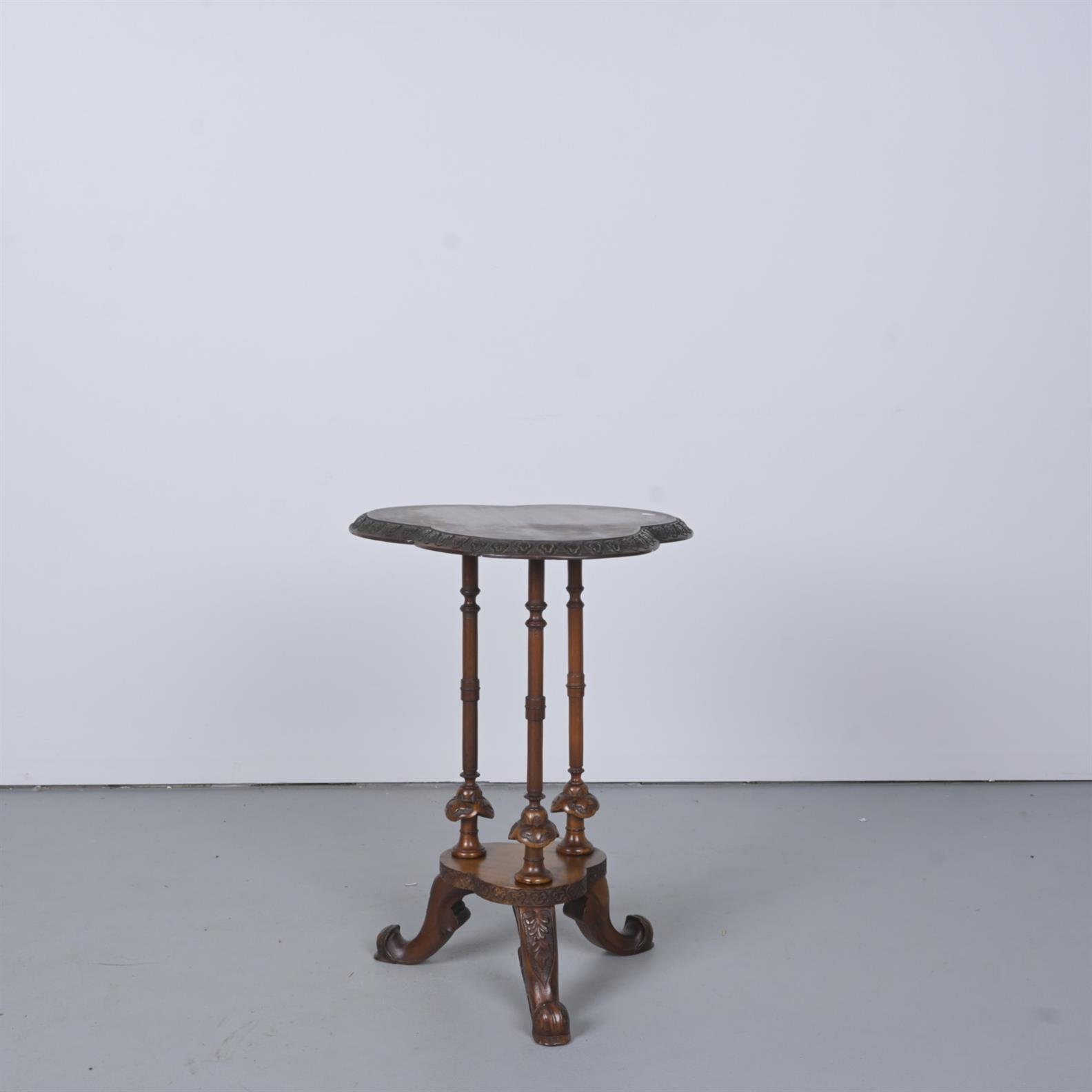 A CARVED MAHOGANY SIDE TABLE (75CM H X 54CM W)