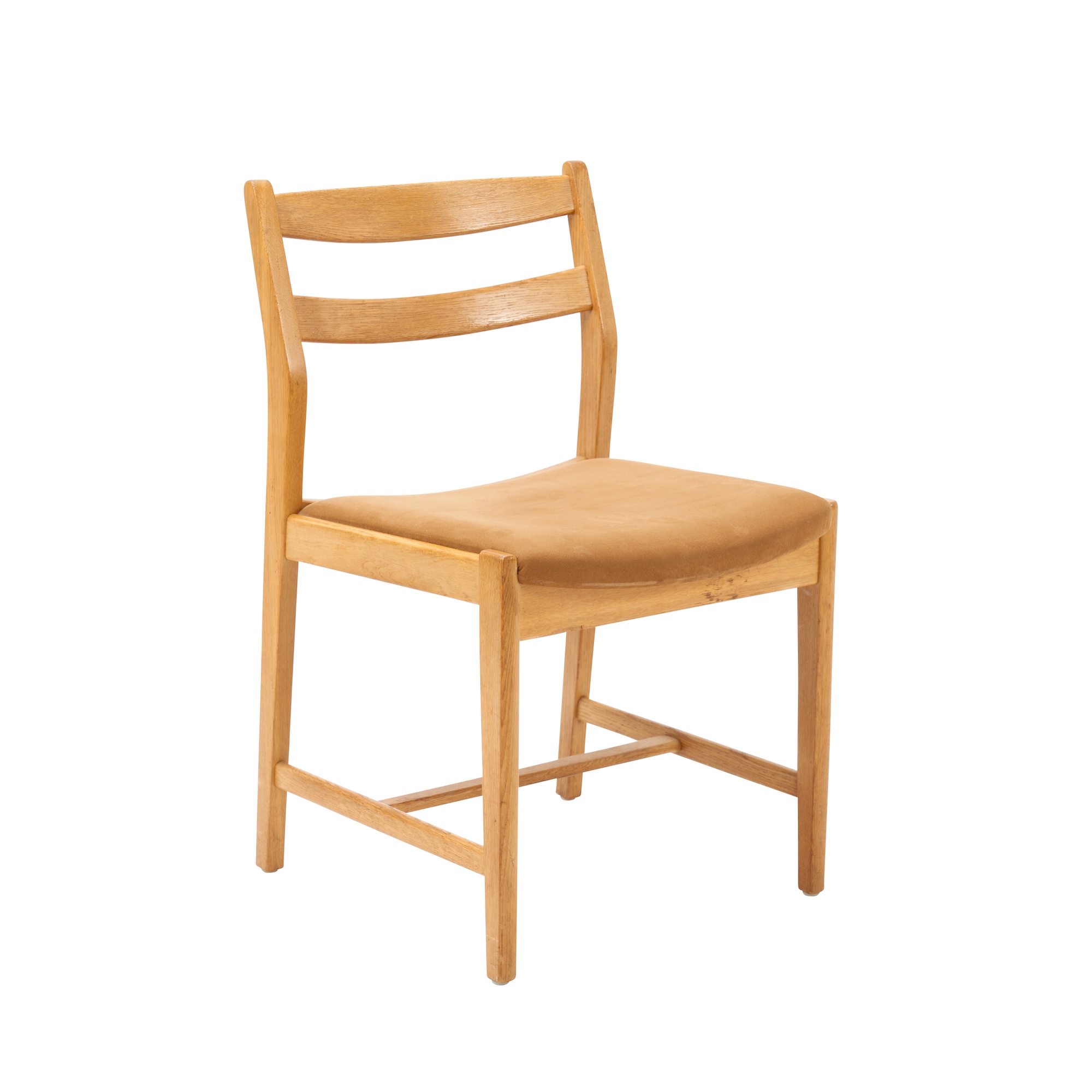 Beech with suede upholstery.