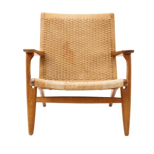 Oak frame with papercord seat. No manufacturer stamp. A/F.