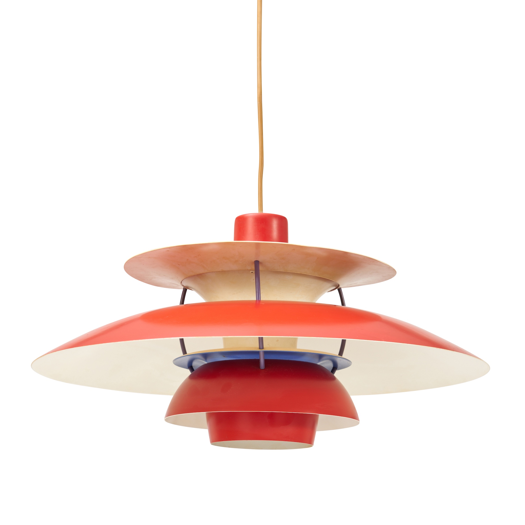 Red, blue and white enamelled metal.