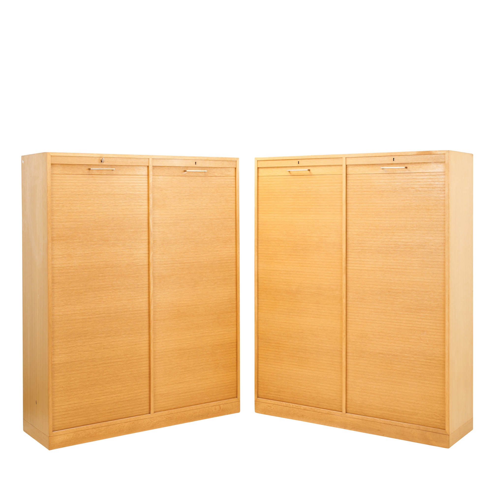 Oak with drop down lockable tabour fronts. Shelving to interior.