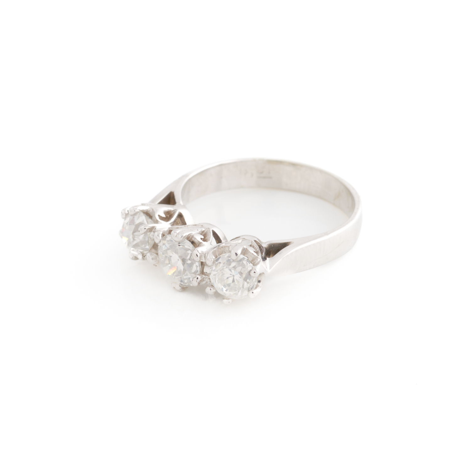 A DIAMOND RING IN 18CT WHITE GOLD, THE DIAMONDS TOTALLING APPROXIMATELY 1.40CTS (F, VVS2), SIZE L