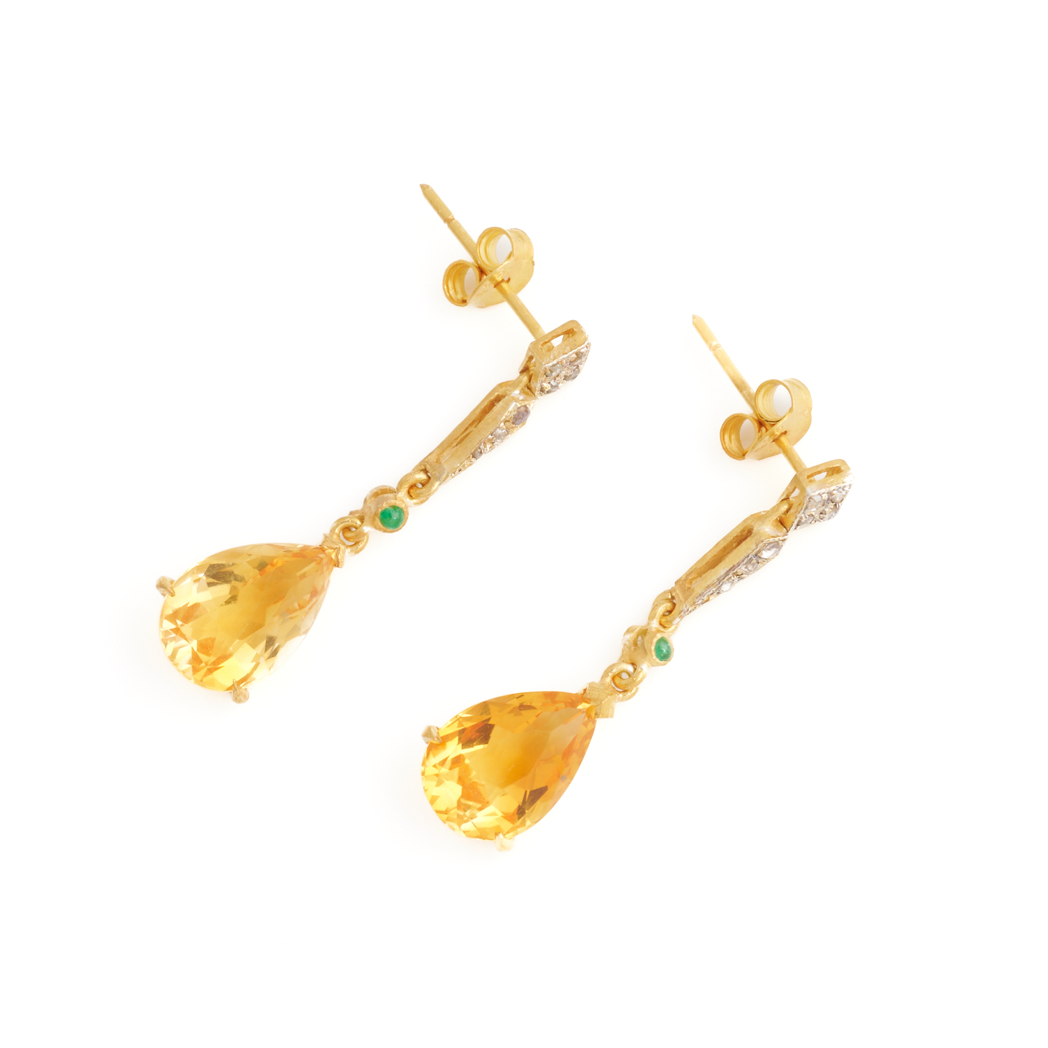A PAIR OF CITRINE EARRINGS IN SILVER GILT, TO POST AND BUTTERFLY FITTINGS, 30MM