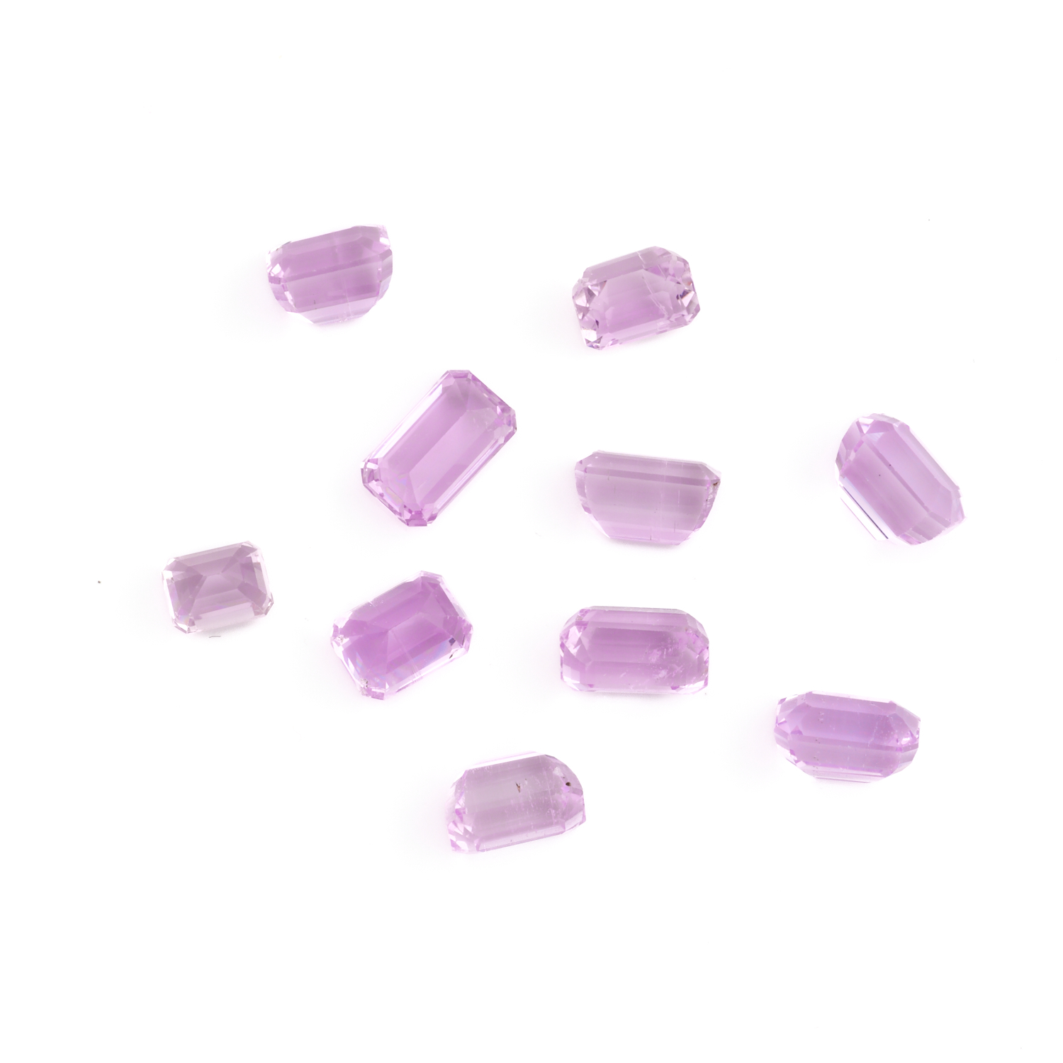A PARCEL OF TEN UNMOUNTED KUNZITES, TOGETHER WEIGHING 45.22CTS, ACCOMPANIED BY A VALUATION