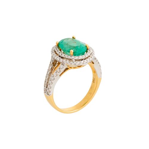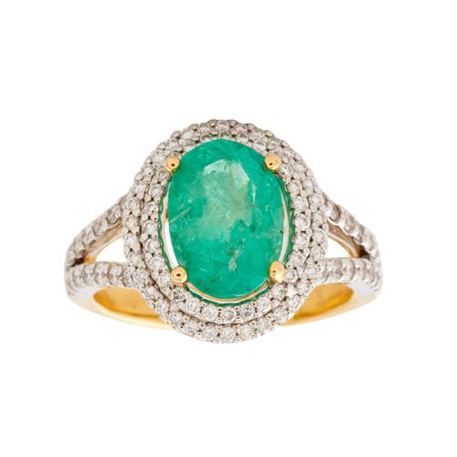 18CT TWO-TONE GOLD, COLOMBIAN EMERALD AND DIAMOND RING