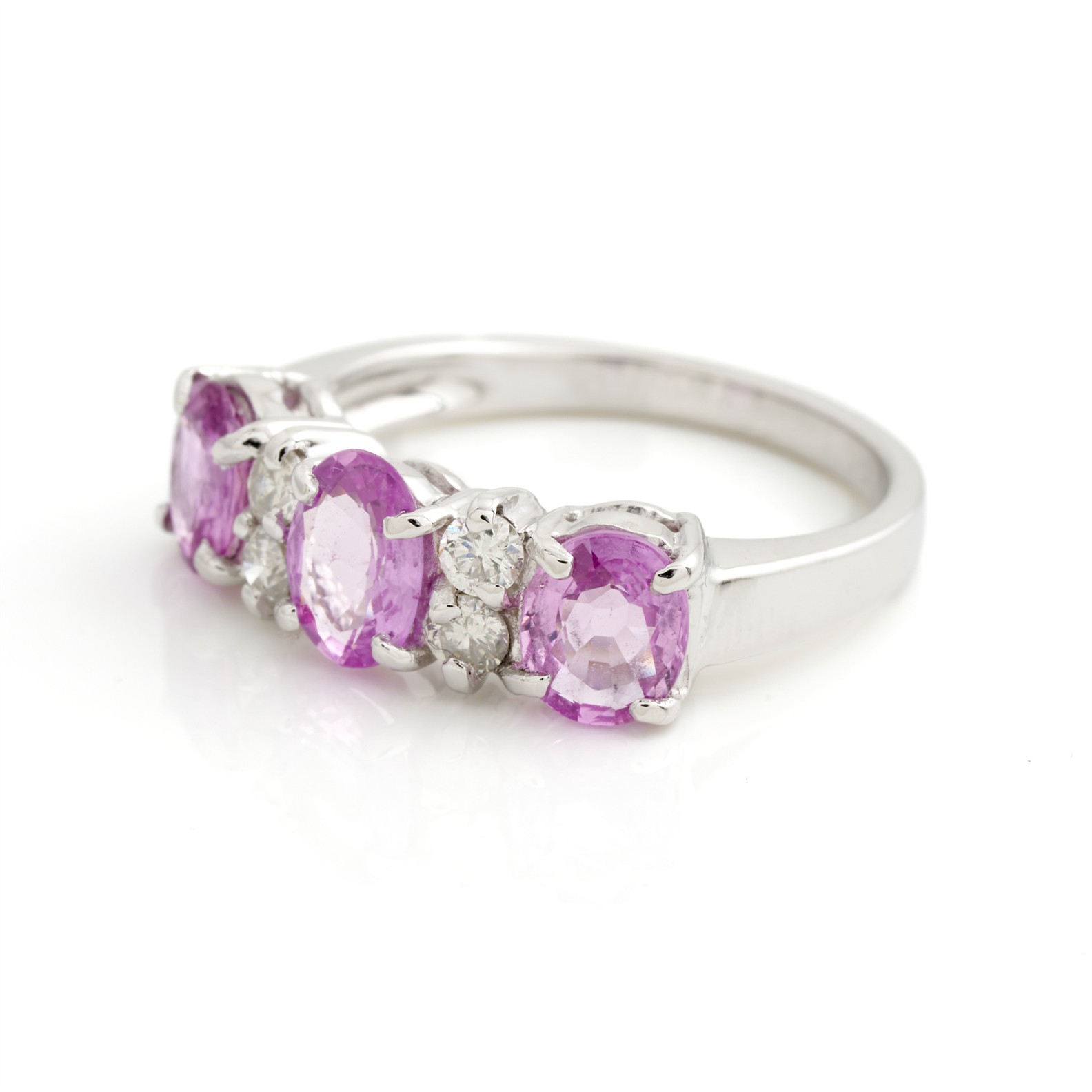 A PINK SAPPHIRE AND DIAMOND RING IN 18CT WHITE GOLD, SAPPHIRES TOTALLING 2.10CTS, SIZE M 1/2, 4.2GMS
