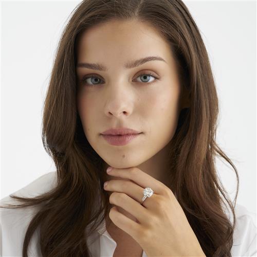 Diamond is approximately K-L colour, I clarity as graded withi the confines of the mount. Thre chips to girdle observed with aid of 10x magnification.