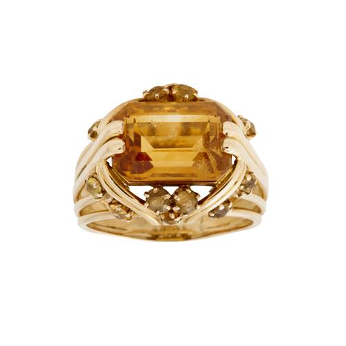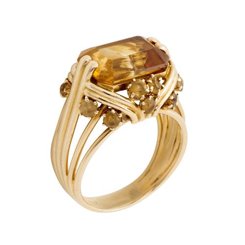 The ring is in good condition relative to age and wear, the central citrine shows minimal signs of abrasion. All stones accounted for and secure in their setting.
