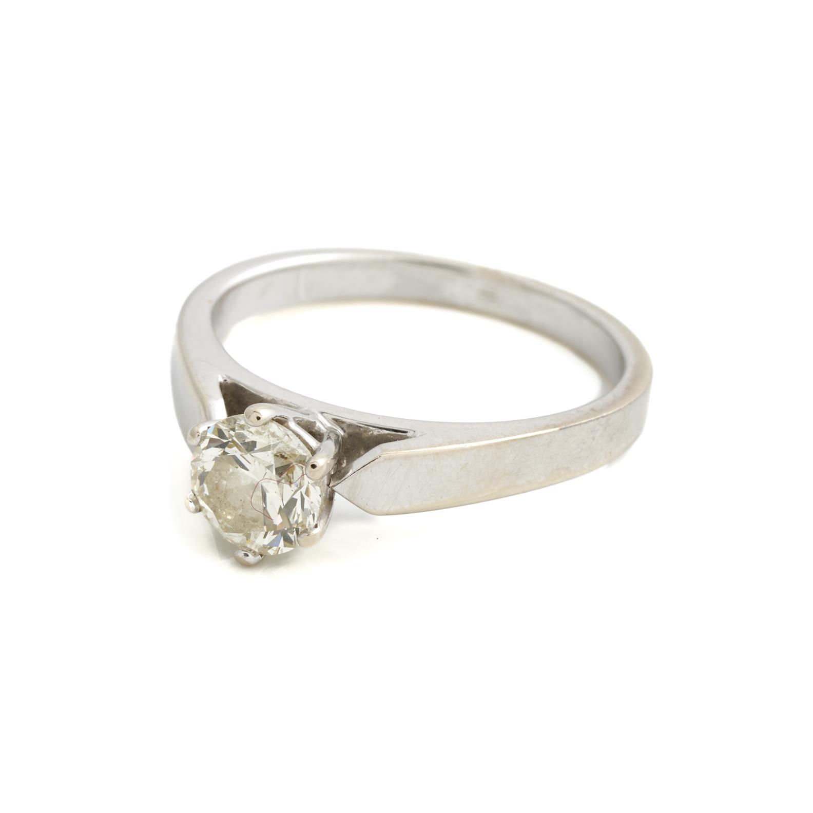 A DIAMOND RING IN 18CT WHITE GOLD, THE DIAMOND WEIGHING APPROXIMATELY 1.00CT, L-M, I2, SIZE R, 5.0GMS