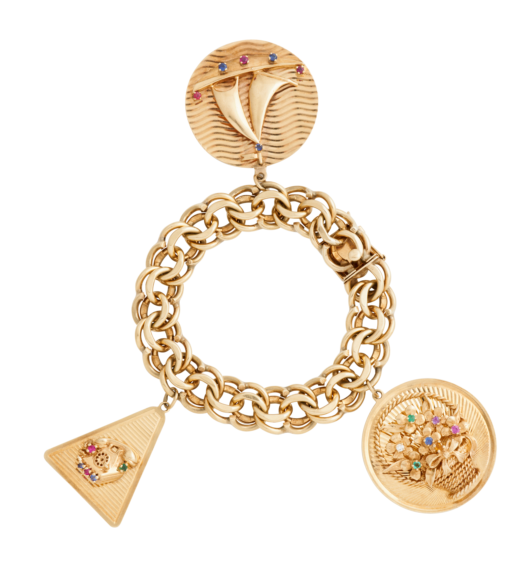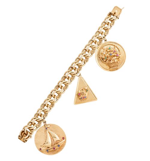 14CT GOLD AND GEM-SET CHARM BRACELET