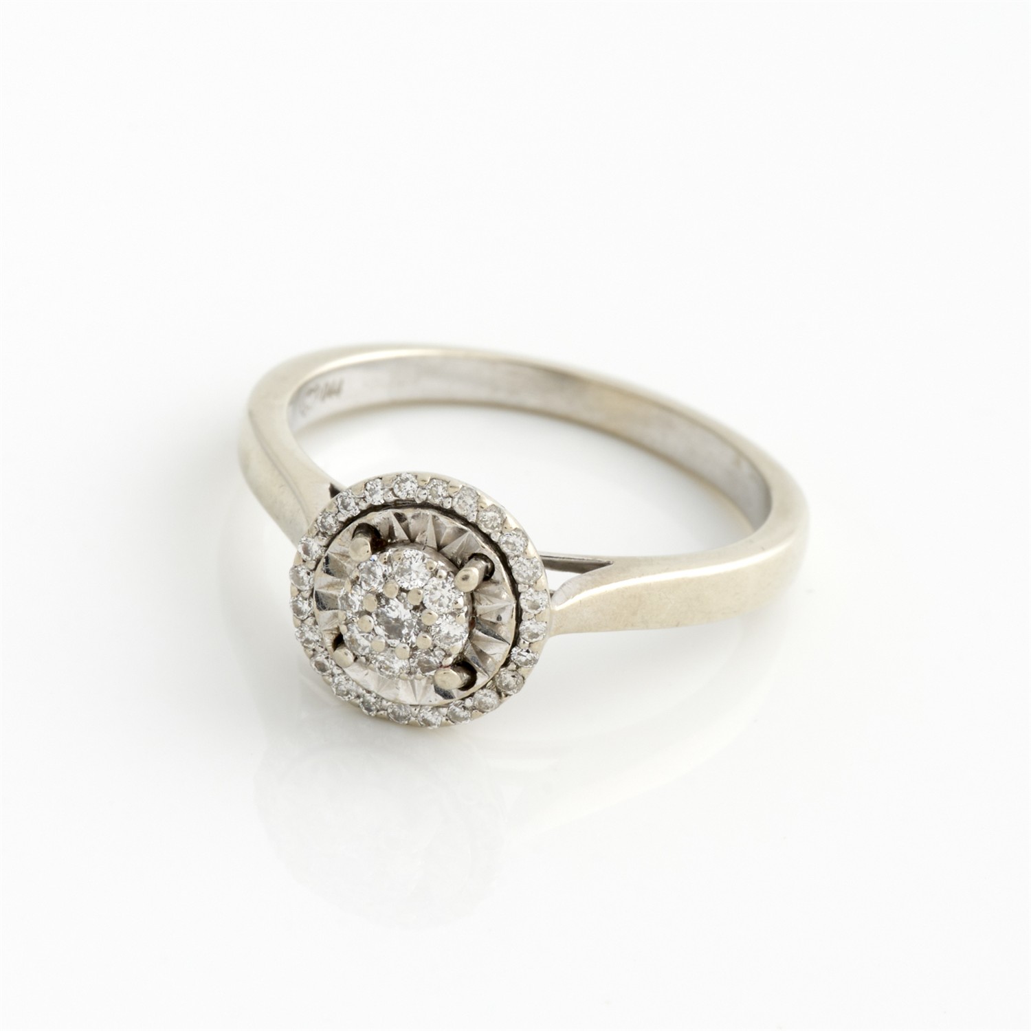 A DIAMOND CLUSTER RING IN 9CT WHITE GOLD, THE DIAMONDS TOTALLING APPROXIMATELY 0.20CT, FINGER SIZE Q, 3.31GMS