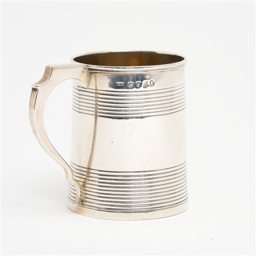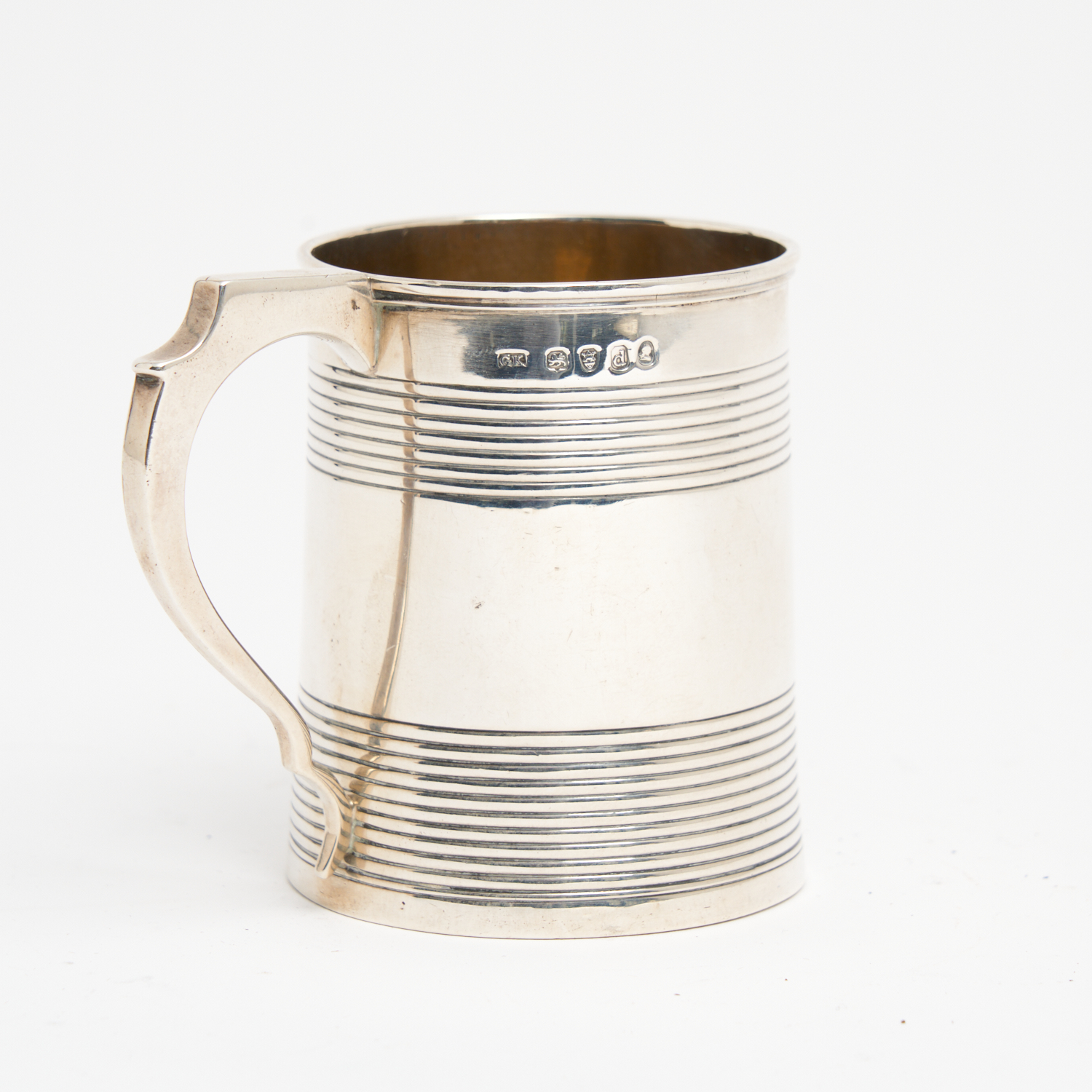 A GEORGIAN STERLING SILVER MUG WITH A GILT WASHED INTERIOR 132G H.8.5CM