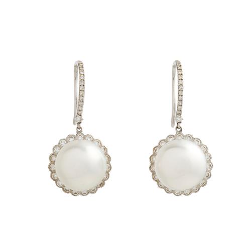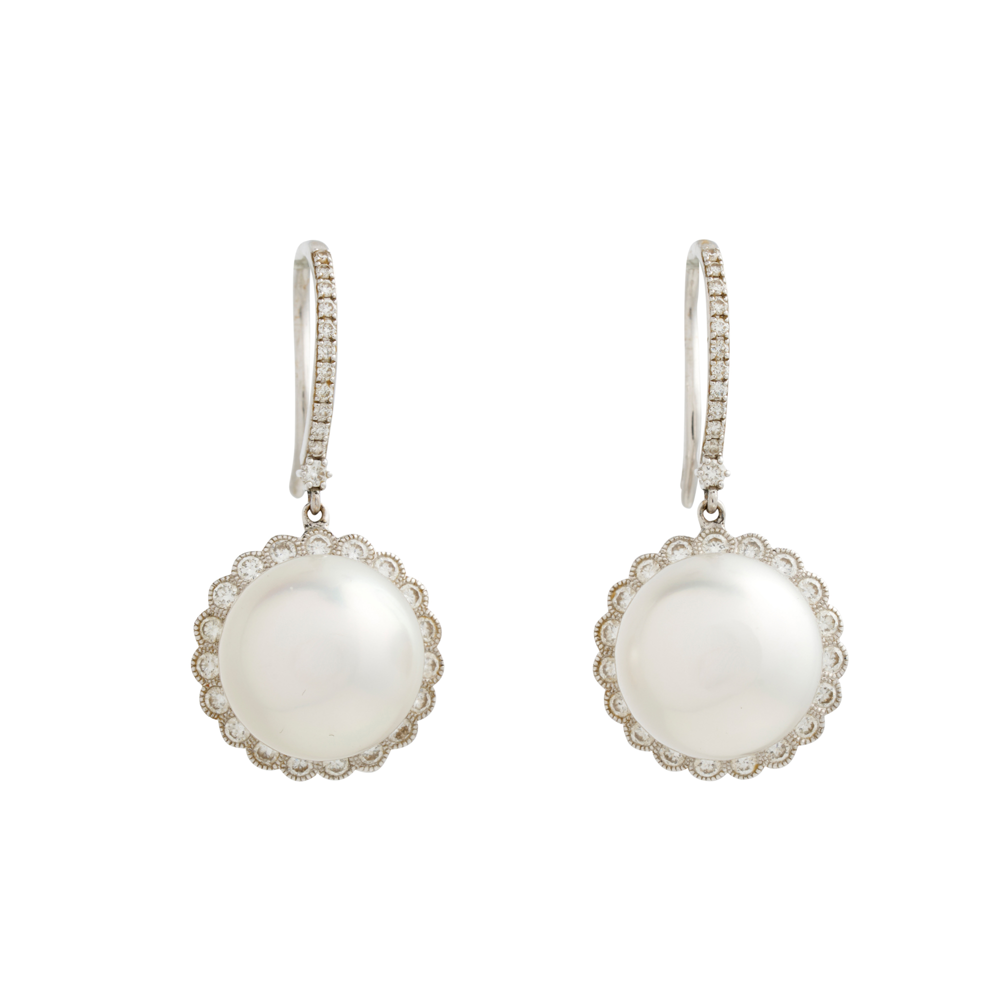 AUTORE, PAIR OF 18CT WHITE GOLD, SOUTH SEA PEARL AND DIAMOND EARRINGS