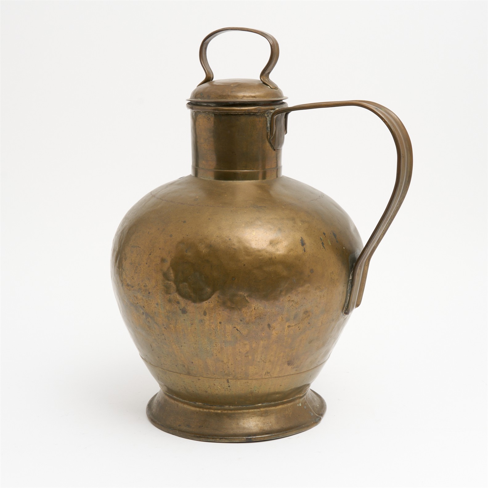 A LARGE 19th CENTURY FLEMISH BRASS MILK JUG H.44CM